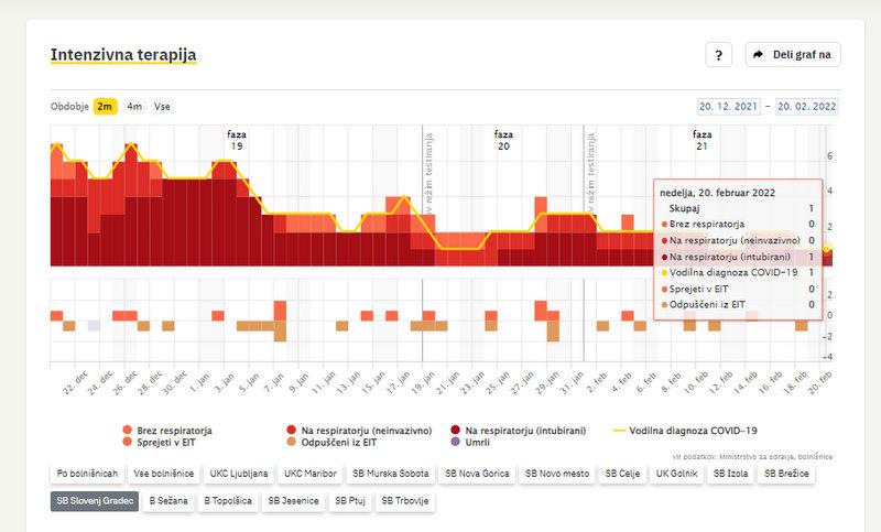 Po oceni Nacionalnega inštituta za javno zdravje (NIJZ) je v državi trenutno 83.177 primerov aktivnih okužb. Na navadnih oddelkih je zaradi covida-19 hospitaliziranih 418 bolnikov, na intenzivnih oddelkih pa 100, je objavila vlada.