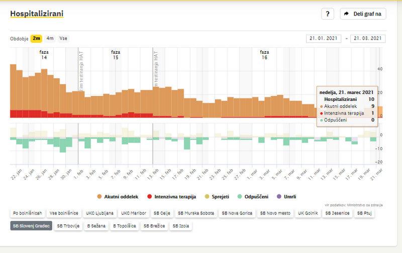 - Dnevno št. odpuščenih iz bolnišnice: 19