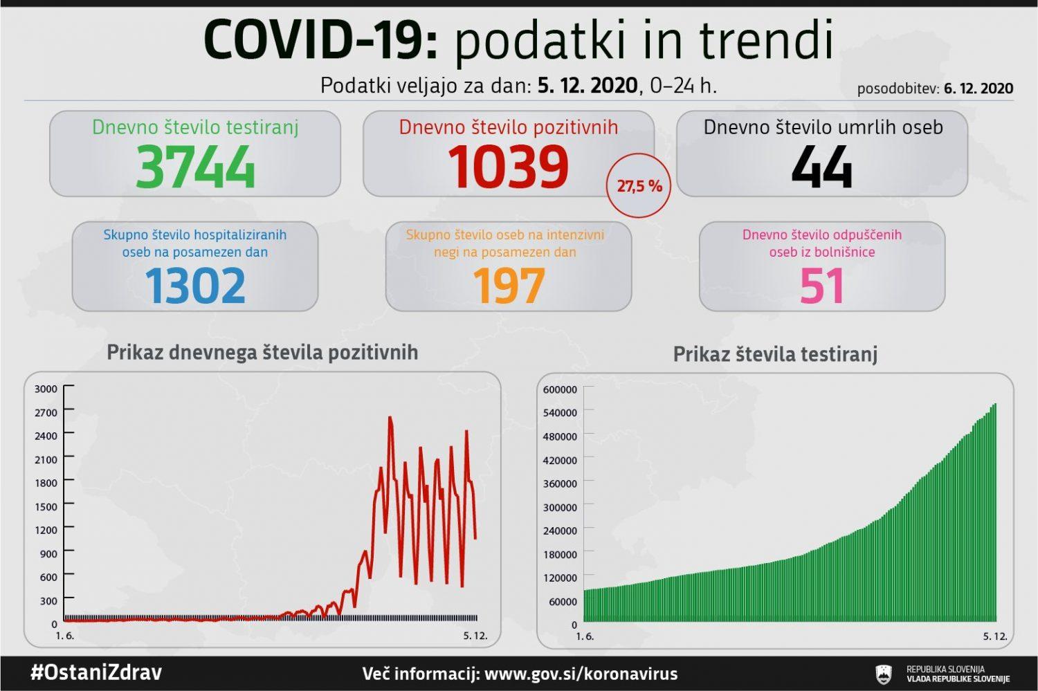 Trend obolelosti s koronavirusom v na dan 5. 12. 2020 (00:00-24:00):