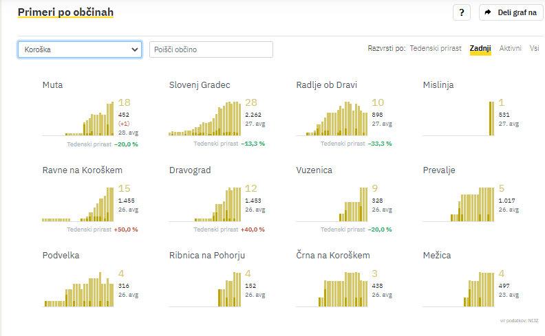 Na Koroškem so včeraj potrdili eno novo okužbo, in sicer na Muti. V regiji je tako 113 aktivnih primerov, največ v Slovenj Gradcu.