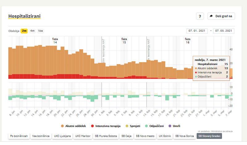 - Dnevno št. odpuščenih iz bolnišnice: 17