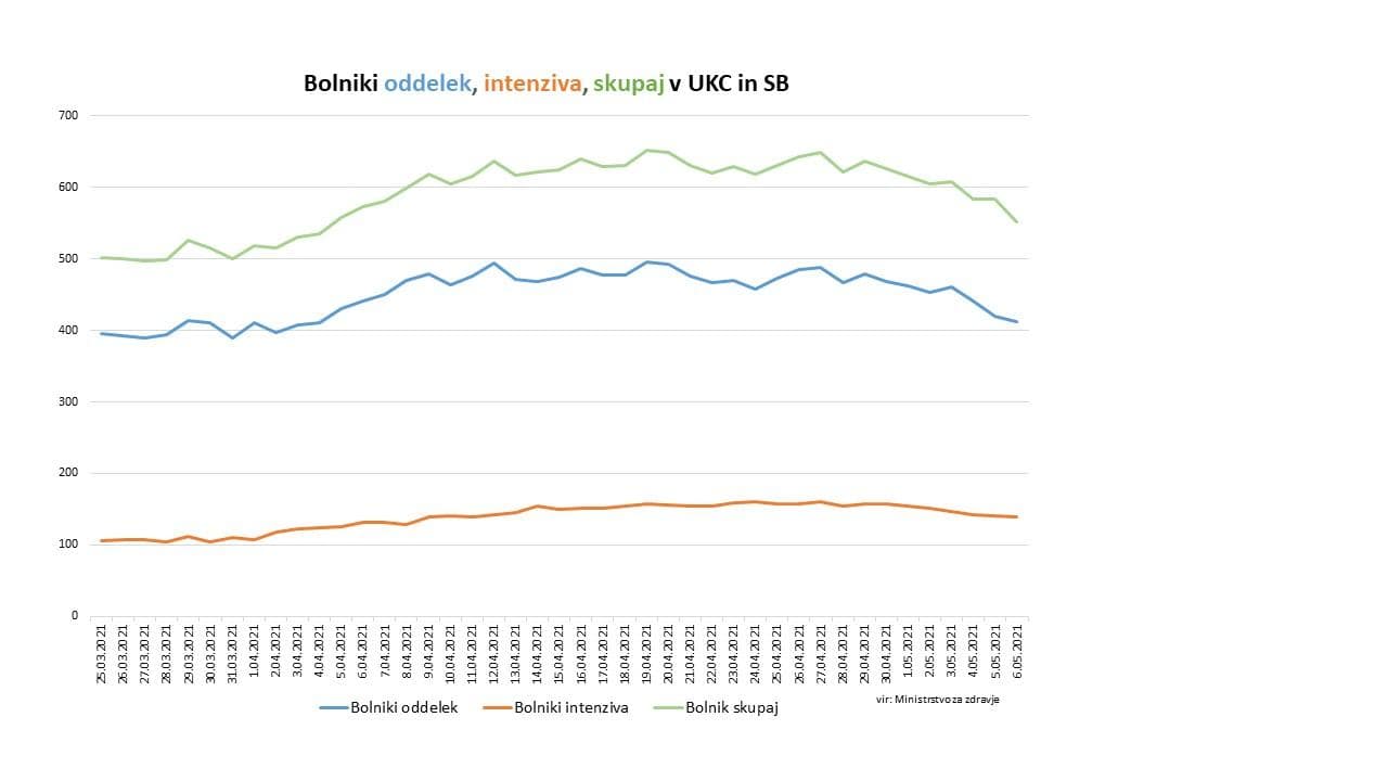 Včeraj je bilo v bolnišnice sprejetih 45 pacientov, odpuščenih pa 51. Skupaj se danes zdravi 551 covidnih pacientov, od tega 139 na intenzivni terapiji. Včeraj so v bolnišnicah umrle 3 osebe.