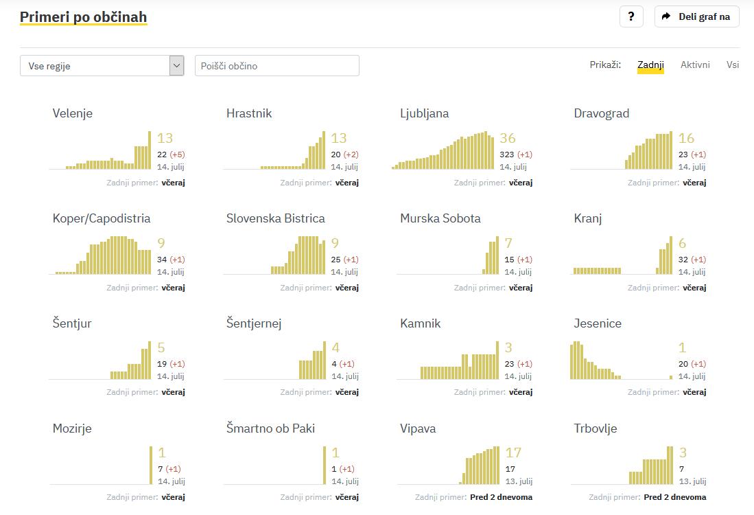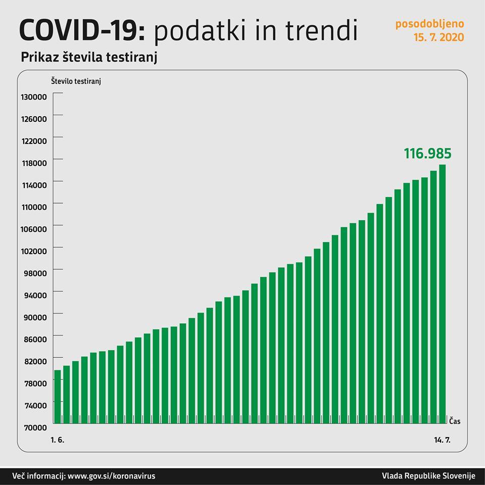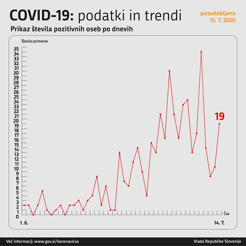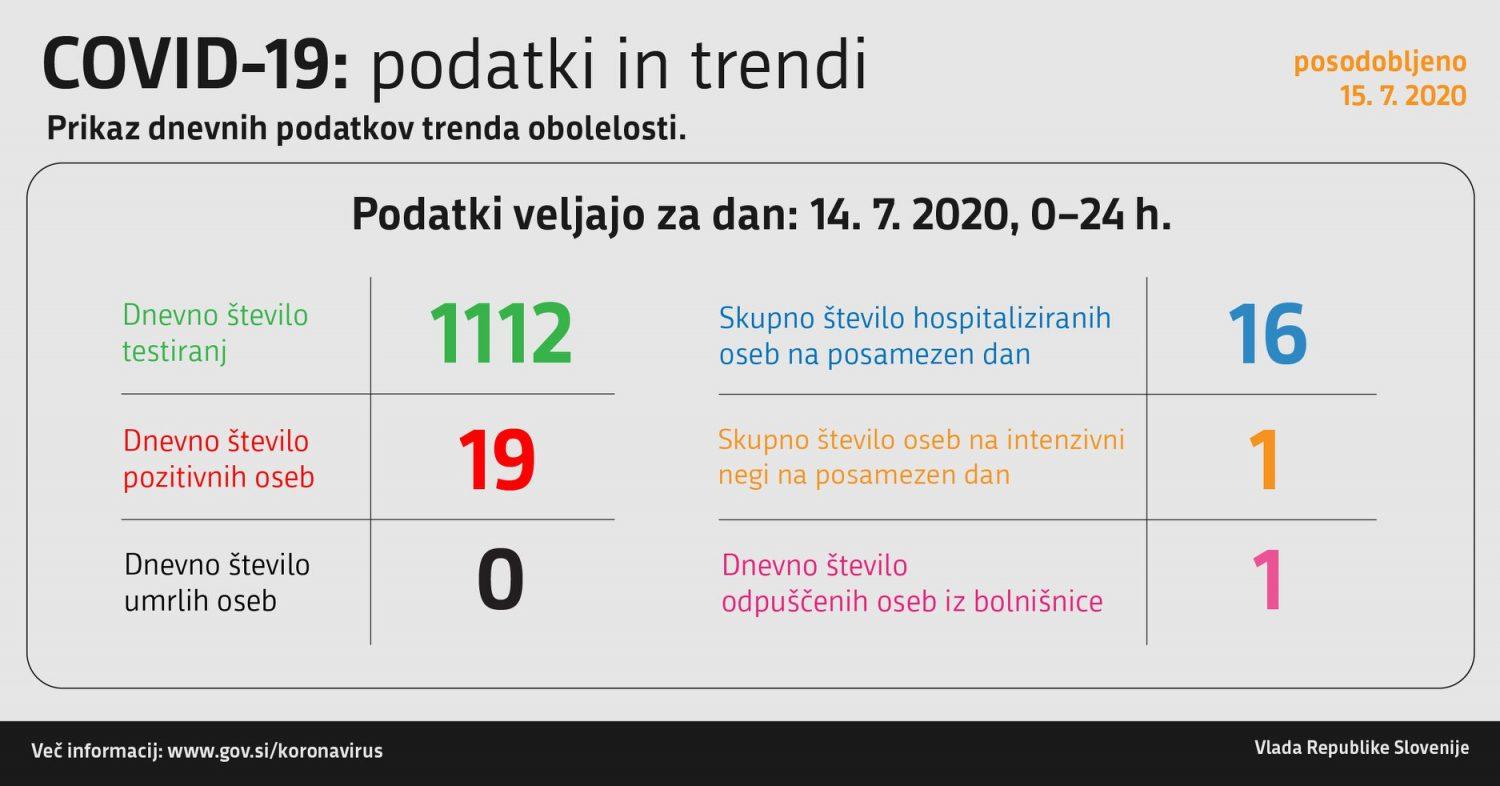 Trend obolelosti s koronavirusom v Sloveniji in podatki za dan 14. 7. 2020 (00:00–24:00):