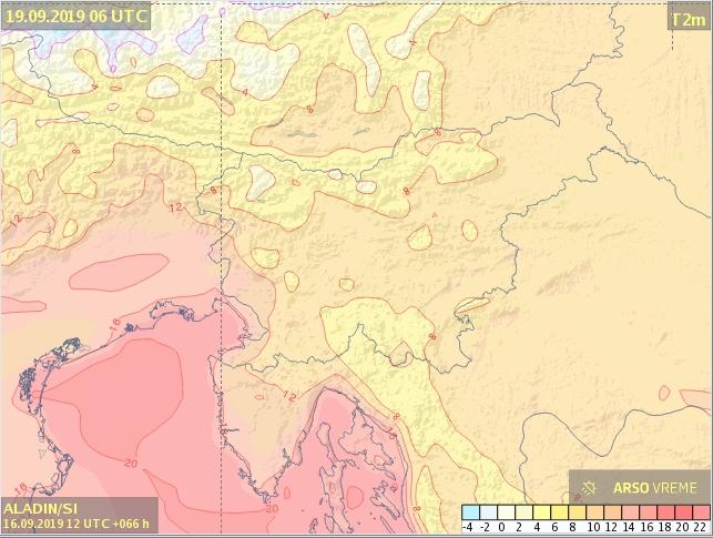 Predvidoma bo najbolj sveže v petek, najhladnejše jutro pa lahko pričakujemo v soboto, ko bo lahko ponekod v izpostavljenih legah, zlasti v Gornjesavski dolini in na planotah Notranjske možna slana. Jutranje temperature bodo od četrtka do nedelje v večjem delu Slovenije okrog 5 stopinj C, ponekod tudi manj. Čez dan bodo temperature v notranjosti države okrog 17 ali 18 stopinj, na Primorskem pa malo nad 20 stopinj C.