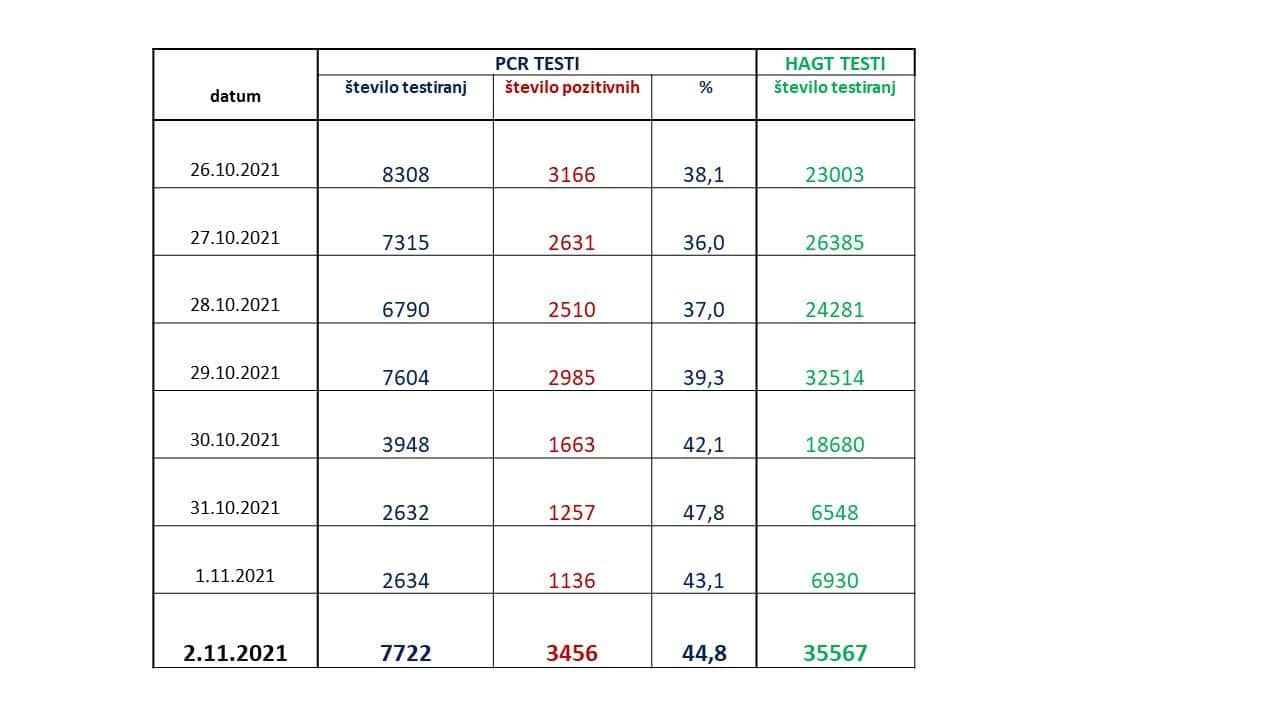 V torek so opravili tudi 35.567 hitrih antigenskih testov, katerih pozitivne rezultate potrjujejo še s PCR-testiranjem.