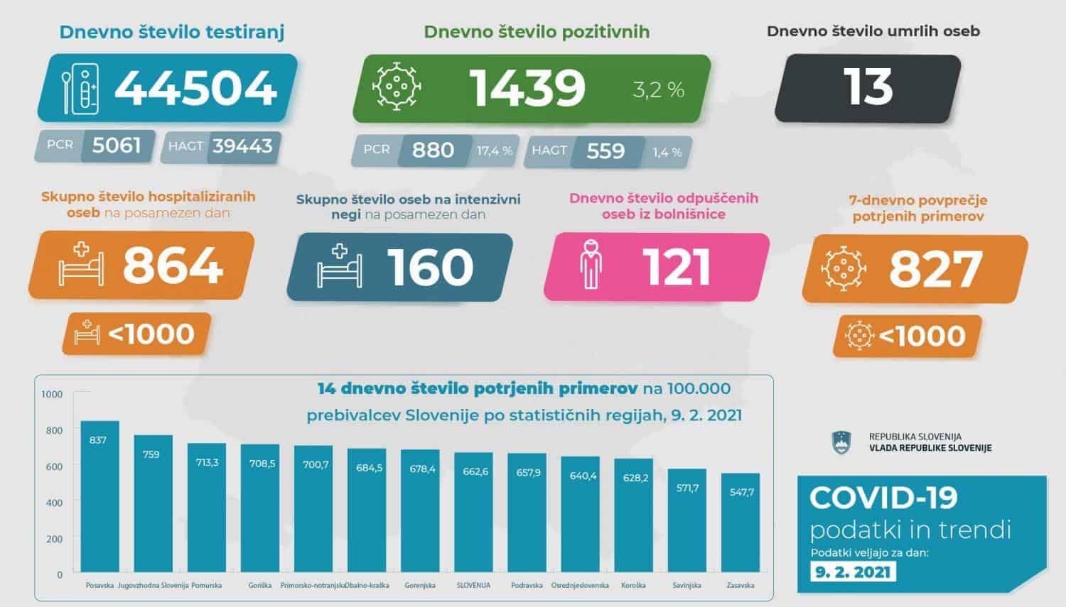 Trend obolelosti s koronavirusom v Sloveniji na dan 9. 2. 2021 (00:00-24:00):
