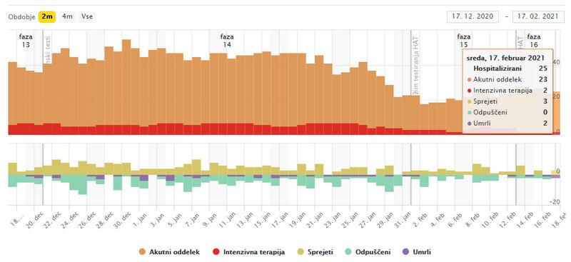 Trend obolelosti s koronavirusom v Sloveniji na dan 16. 2. 2021 (00:00-24:00):