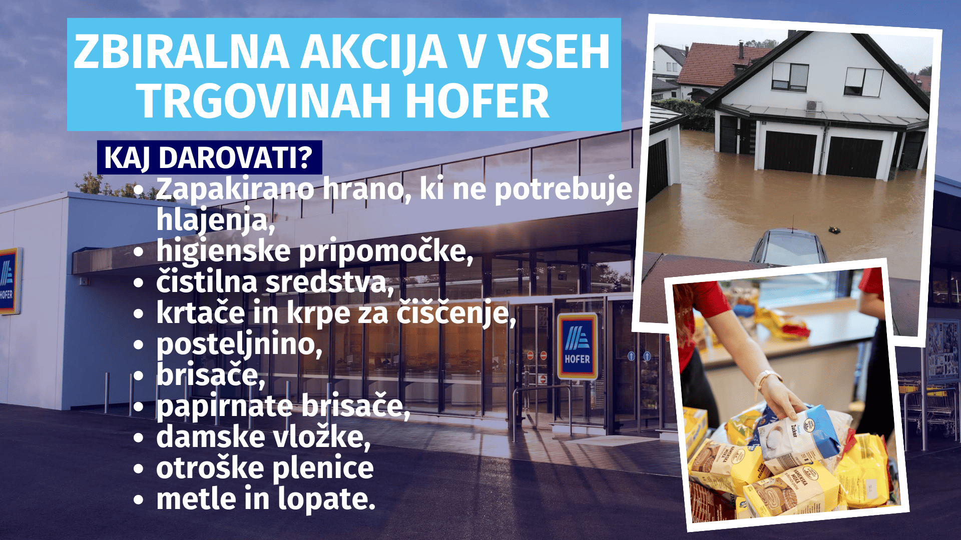 Kupci bodo lahko kupljene izdelke od danes do konca avgusta odložili v nakupovalne vozičke, ki bodo na voljo ob pakirnih pultih v vseh 91 trgovinah HOFER. Ljudje, ki jim voda ni prizanesla, najbolj potrebujejo zapakirano hrano, ki ne potrebuje hlajenja, higienske pripomočke, otroške plenice, damske vložke, čistilna sredstva, krtače in krpe za čiščenje, papirnate brisače, metle in lopate, posteljnino in brisače. Prostovoljci Slovenske karitas bodo te darovane izdelke, za katere se HOFER svojim kupcem že vnaprej iskreno zahvaljuje, razdelili pomoči potrebnim.