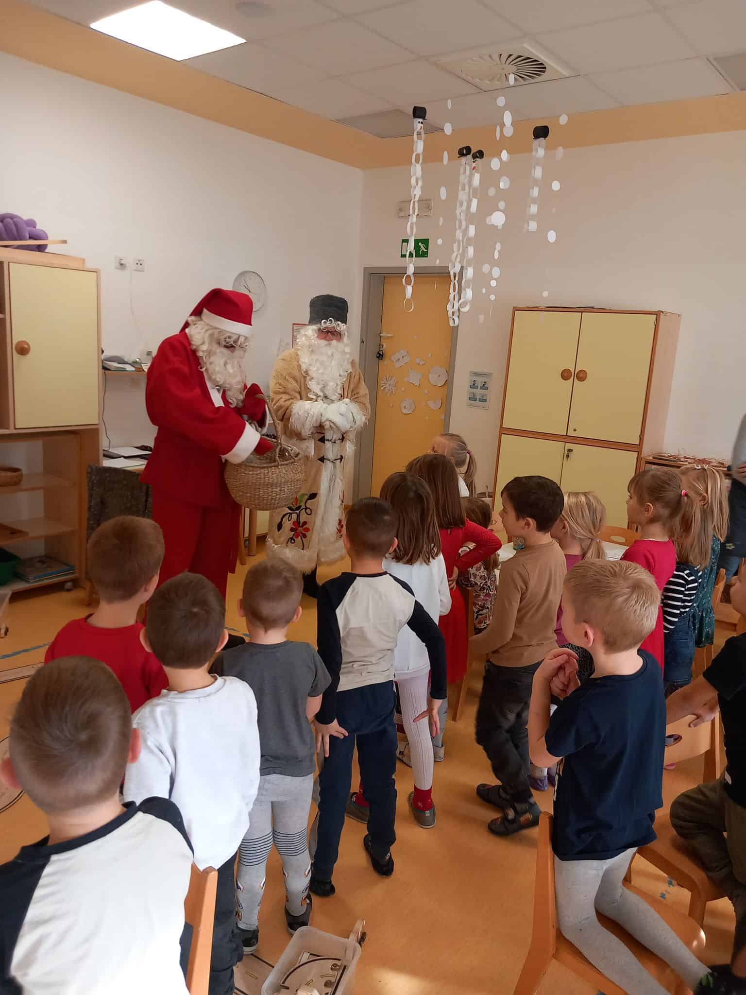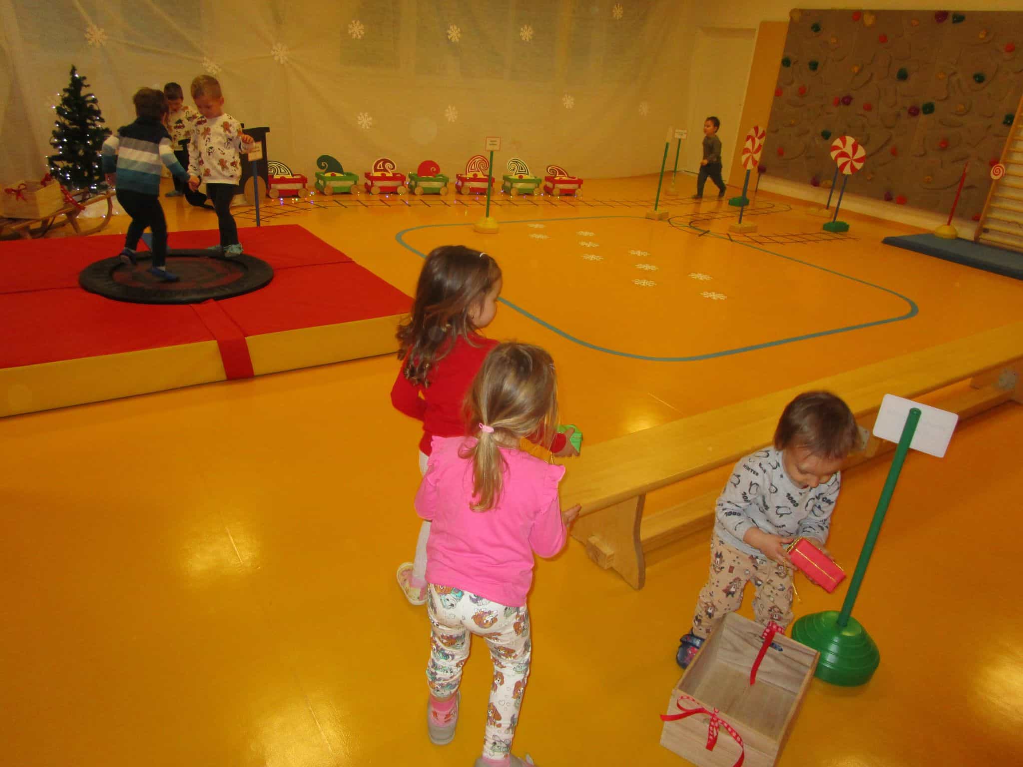 Strokovne delavke vrtca so pripravile novoletni koncert božičnih pesmi zaigranih na prečno flavto in Škratkovo deželo. Telovadnico so spremenile v pravljični poligon, otroci so po navodilih škratkov premagovali različne ovire in naloge, na koncu pa jih je pod smrečico čakal bombon.