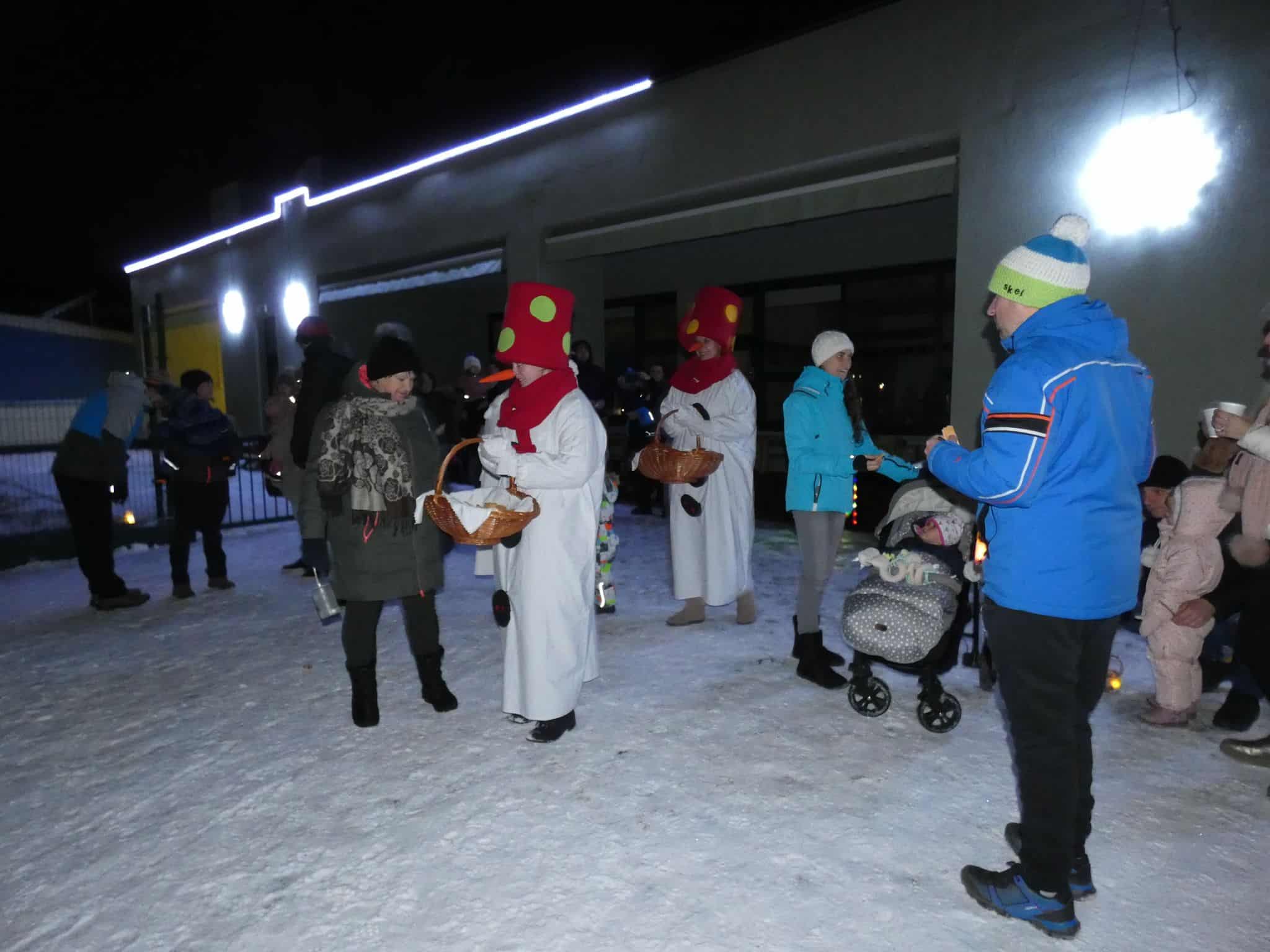 Priprave na pohod z lučkami s starši so se začele že teden dni prej. Otroci so prinesli v vrtec steklene kozarce, jih okrasili in spremenili v lučke. Dolga kolona se je vila po poti in čaroben pogled na sprevod z lučkami. Na koncu so jih na naši terasi vrtca pričakali snežaki in snežinke s košarami polnih mandarin in piškotov.