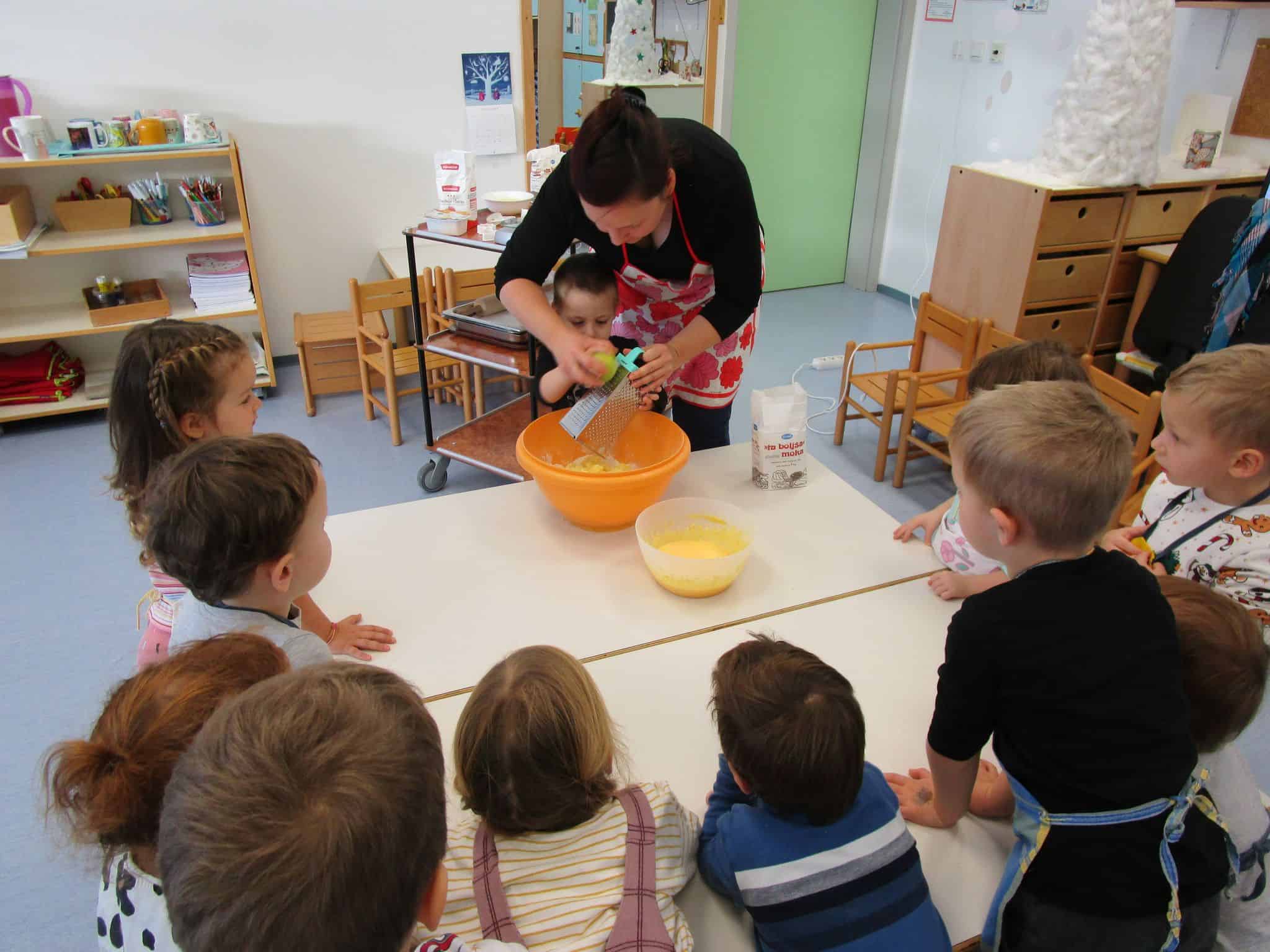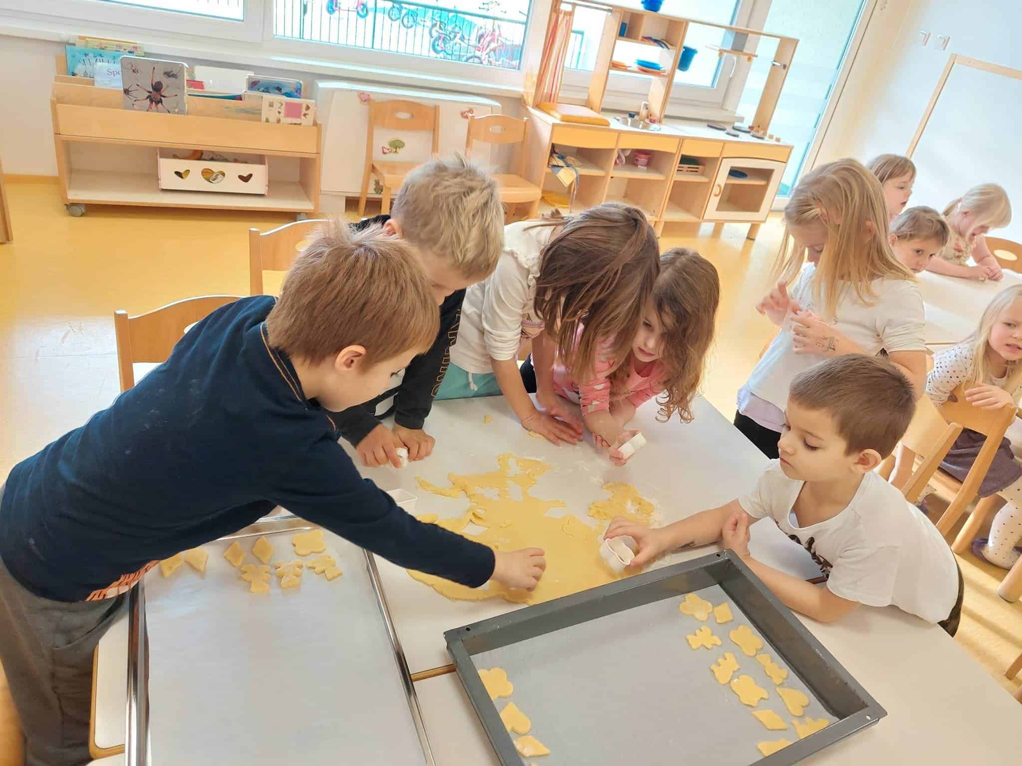 Vsako leto se zelo veselijo peke piškotov. Kuharice jim vse sestavine pripravijo na voziček, otroci pa jih poimenujejo, vonjajo, okušajo. Otroci testo valjajo, z modelčki izrezujejo različne oblike in jih polagajo na pekač. Po vrtcu najbolj prijetno zadiši in pa komaj čakajo, da so pečeni. V igralnicah pripravijo čajanko, ob svečkah, prijetni glasbi pijejo čaj, se družijo in sladkajo s piškoti.