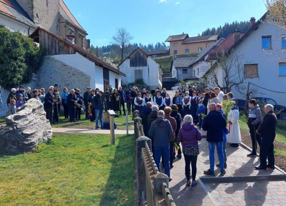 Tlakovana pešpot je urejena v skladu s kulturnovarstvenimi pogoji, ko jih določa Zavod za varstvo kulturne dediščine.