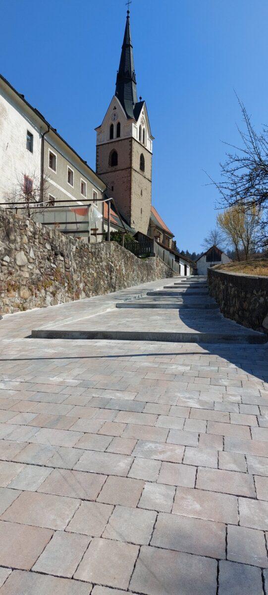 Zaradi težav pri dobavi materialov, bo v naslednjih dneh še nameščena razsvetljava in ograja ob klančini. V nadaljevanju načrtujemo obnovo preostalega dela poti na spodnji in zgornji strani tlakovanja (prehod s Pohorske ulice in Zg. trga).