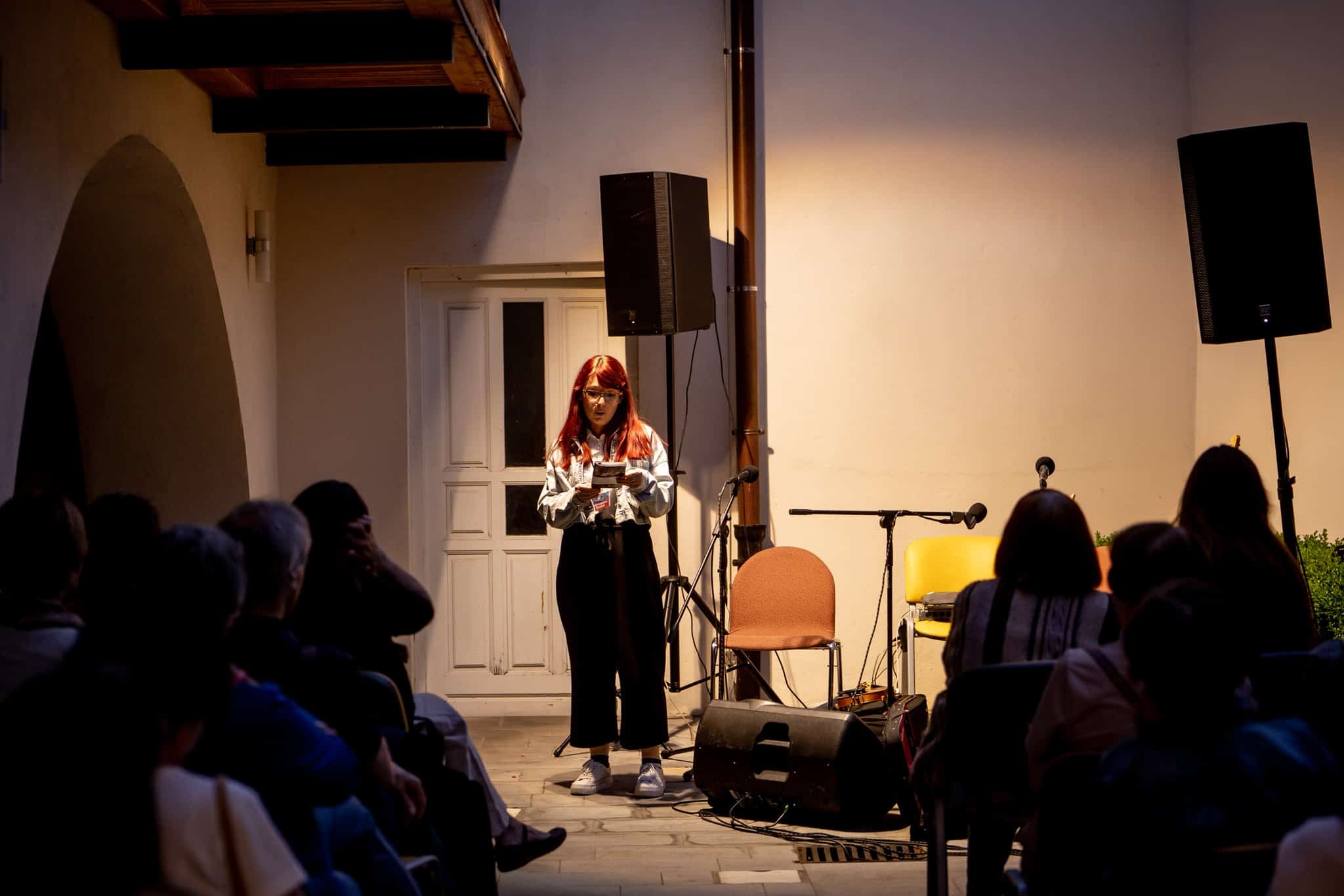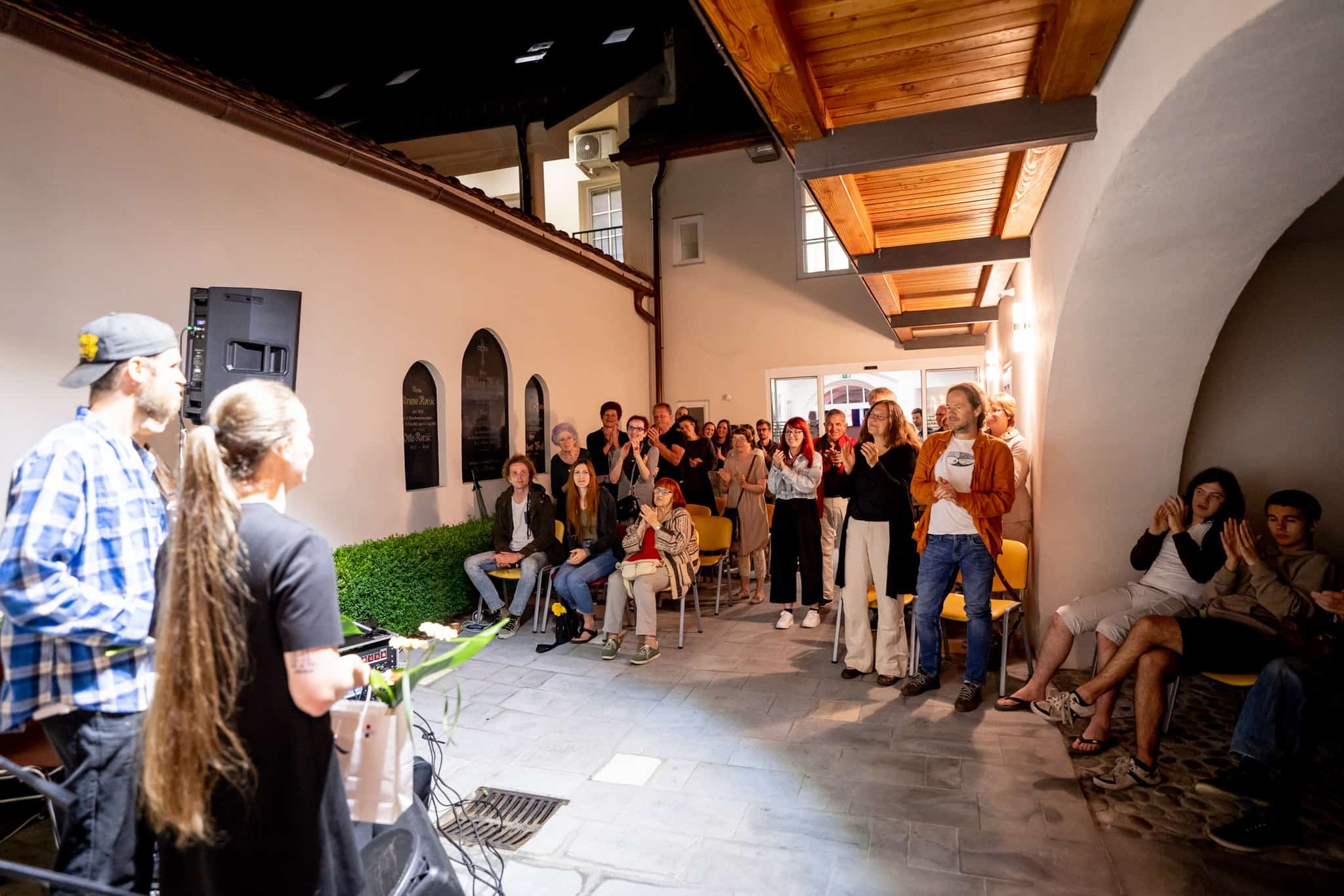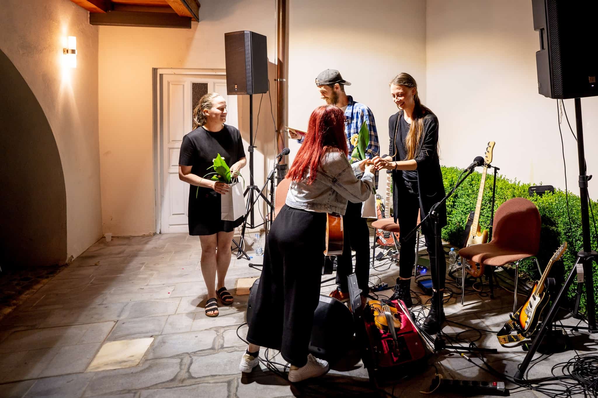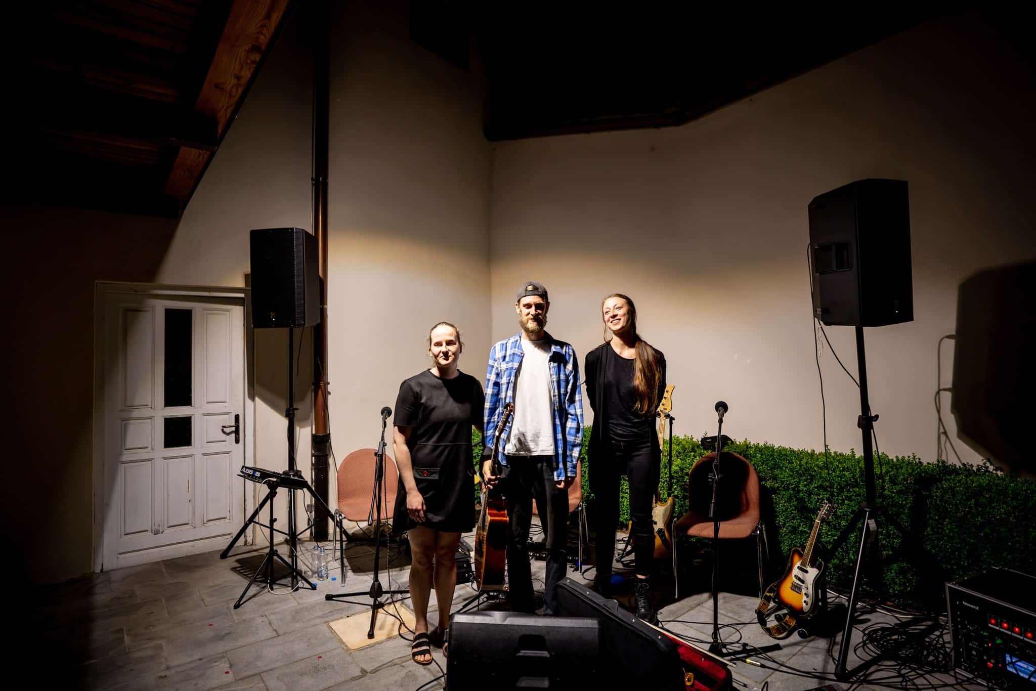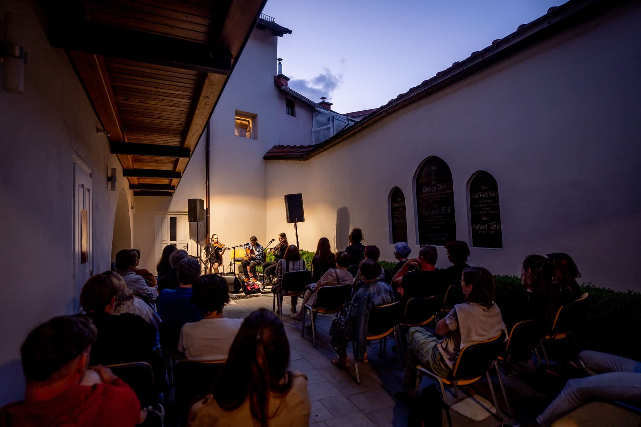 V Wolfovem atriju v Slovenj Gradcu smo na Poletno muzejsko noč v soboto, 17. junija, ob 21. uri prisluhnili vrhunskemu akustičnemu triu Hedera Vento v sestavi violistke Mojce Kamnik, violinistke Urše Lorber in kitarista Aljaža Lipuša. Njihovo avtorsko glasbo zaznamujejo vplivi ljudske glasbe, glasbe sveta, elementi bluza, džeza in latino glasbe.
