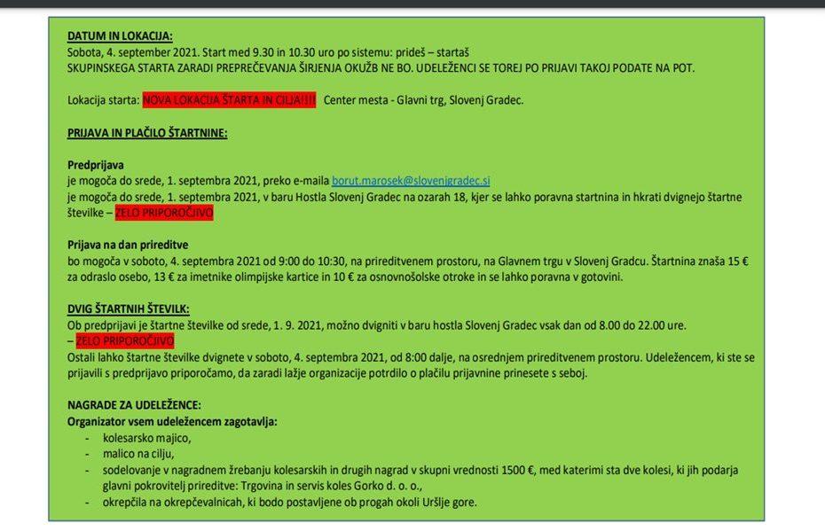 Vse dodatne informacije o prijavi, štartnini, trasah ter splošno o udeležbi na prireditvi najdete na povezavi: https://www.spotur.si/Domov/ArtMID/773/ArticleID/4281