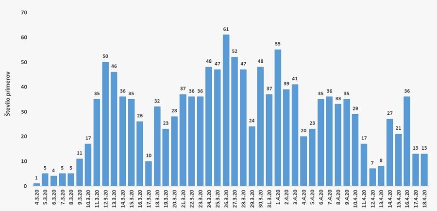 Dnevno število potrjenih primerov COVID-19 do vključno 19. 4. 2020