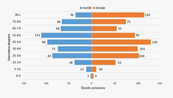 V spodnji tabeli je prikazano skupno število primerov ter število novih primerov in razporeditev po spolu.