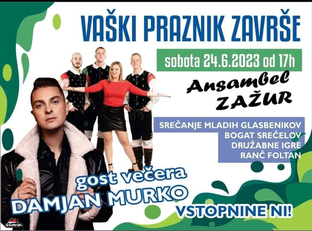 Ansambel Zažur in Damjan Murko bosta popestrila vaški praznik v Završah. Odvijal se bo na športnem igrišču, danes, 24. 6. 2023, s pričetkom ob 17. uri.
