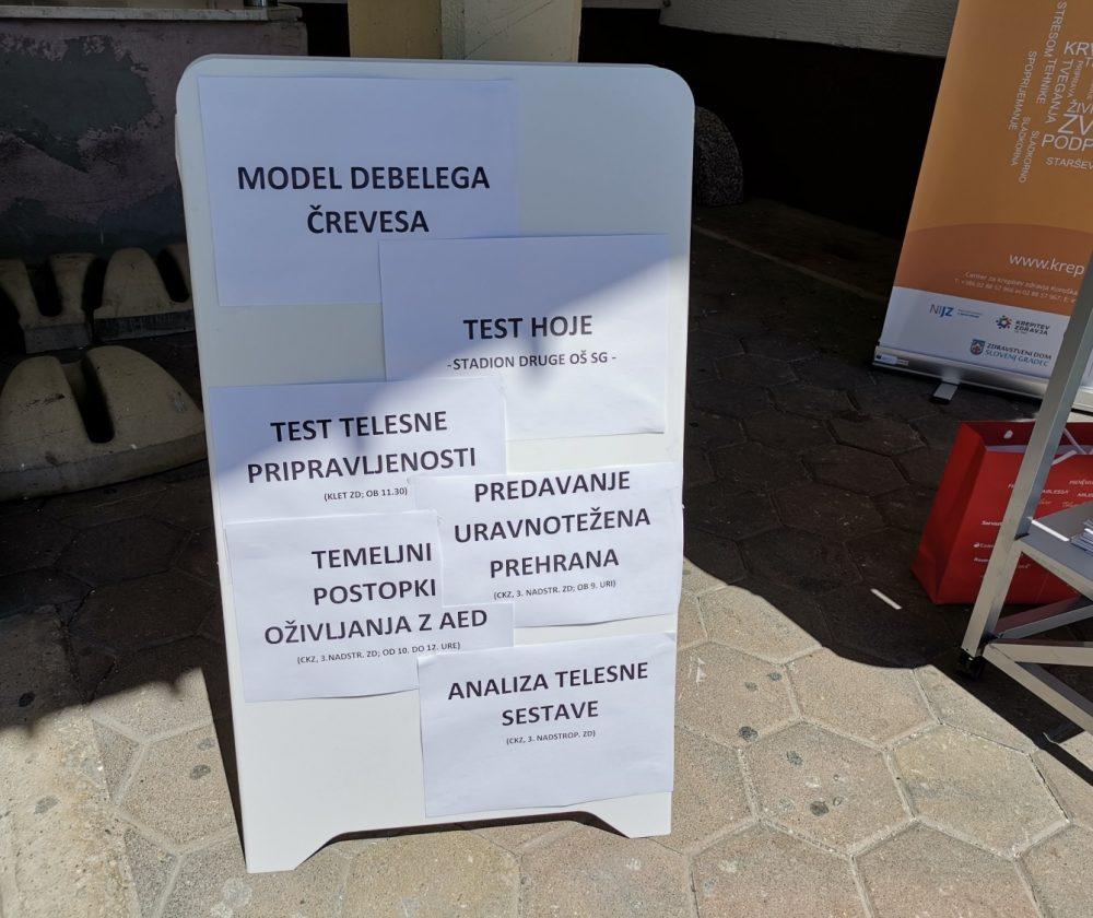V prostorih Zdravstvenega doma Slovenj Gradec je potekalo predavanje uravnotežene prehrane, v dopoldanskih urah ste se na stadionu pred Drugo osnovno šolo lahko udeležili testa hoje, pred zdravstvenim domom pa je ob 11:30 potekal test telesne pripravljenosti.
