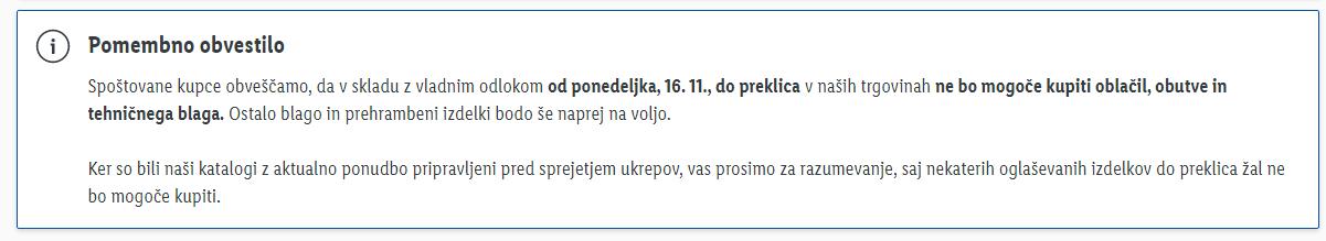 Spomladi, v prvem valu epidemije, ko je vlada sprejela ukrepe za zajezitev novega koronavirusa so živilske trgovine lahko prodajale oblačila, obutev in tehnično blago. Vlada pa je tokrat sprejela, da bodo omenjeni izdelki zdaj na voljo le v spletnih trgovinah.