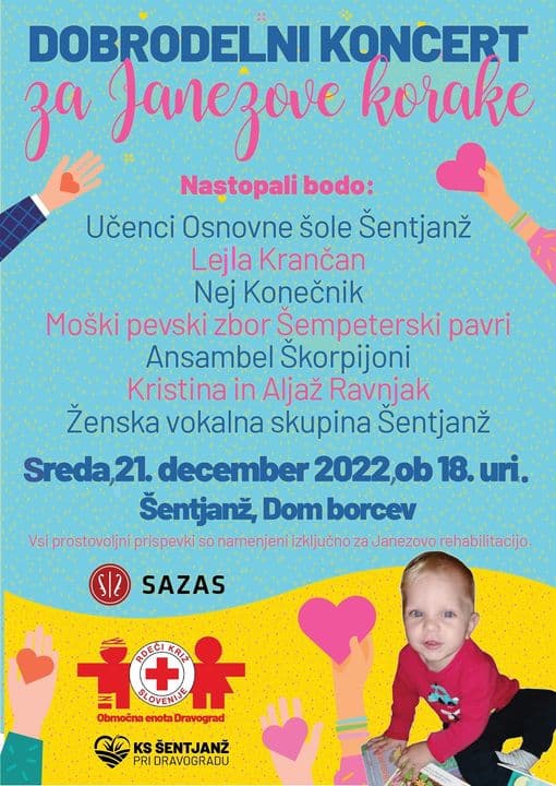 V ta namen so se v okviru Območnega združenja RK Dravograd odločili družini finančno pomagati, poleg zbiranja finančne pomoči organizirati tudi dobrodelni koncert, ki se bo odvijal v Domu borcev v Šentjanžu, to sredo, 21. decembra, ob 18. uri. Vsi sodelujoči na koncertu se odpovedujejo honorarju. Celoten izkupiček (zbran s prostovoljnimi prispevki na koncertu in donacijami) bo v celoti namenjen izključno za Janezovo zdravljenje in rehabilitacijo.