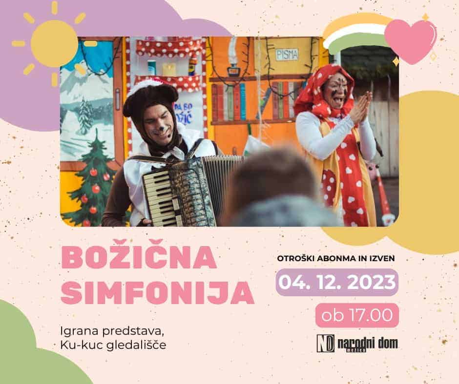 V ponedeljek, 4. decembra 2023, ob 17. uri, v veliki dvorano Narodnega doma Mežica, prihaja Božična simfonija. Predstavo za otroke bo izvedlo KUC KUC gledališče.