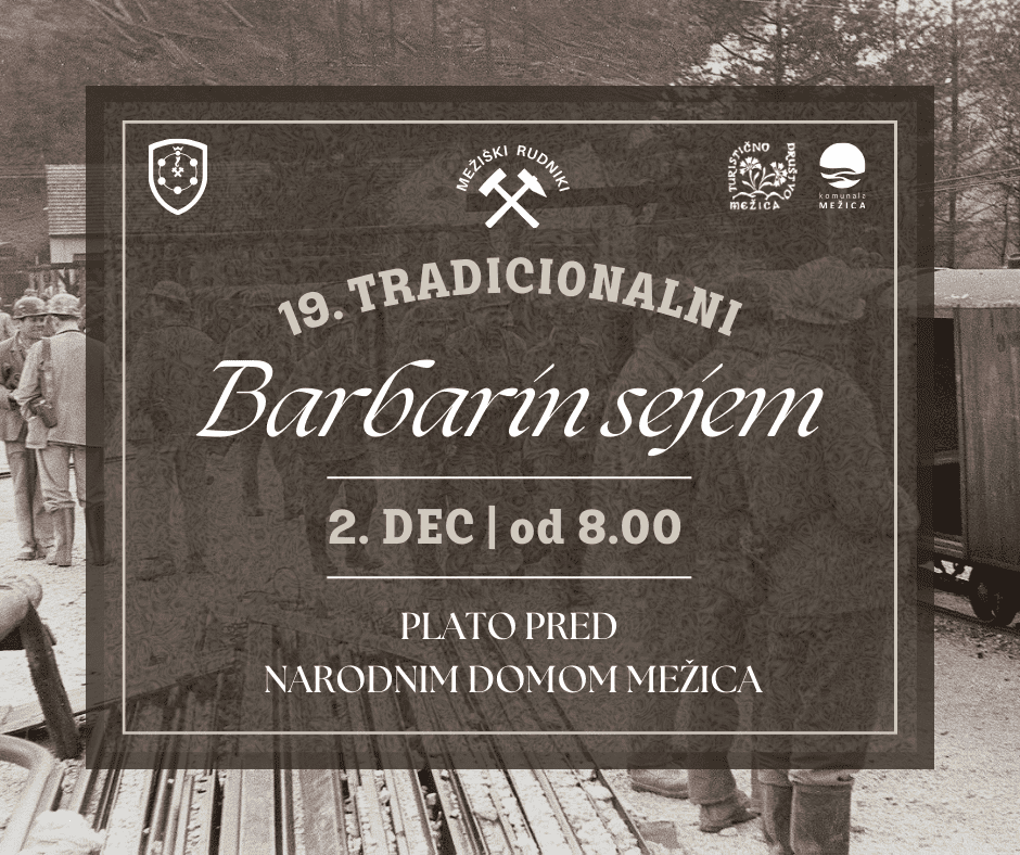 V soboto, 2. decembra 2023, od 8. ure dalje bo potekal tradicionalni Barbarin sejem v čast občinskemu prazniku Občine Mežica, ko goduje sv. Barbara, zaščitnica rudarjev. Dogajanje se bo odvijalo na platoju pred Narodnim domov Mežica.