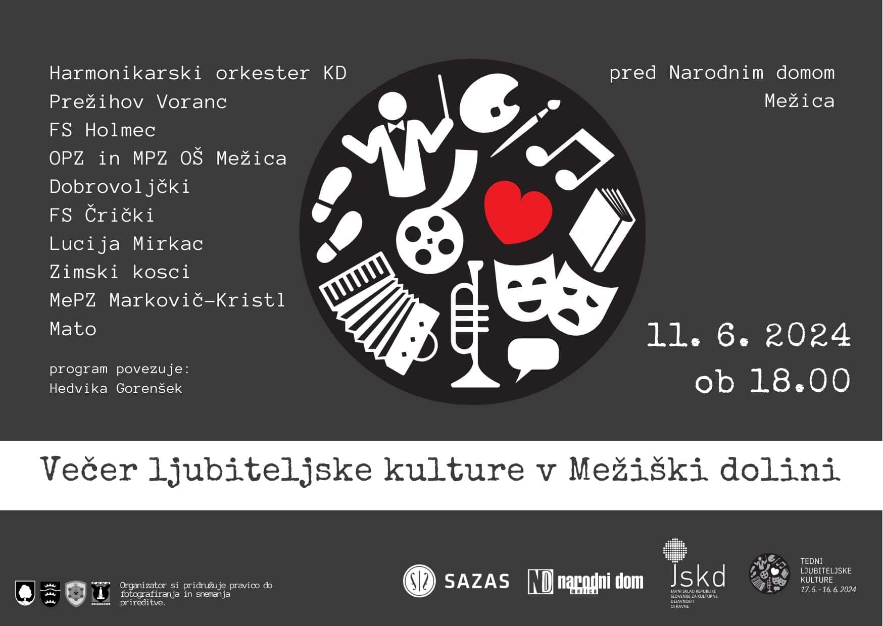 Dogodek v organizaciji Narodnega doma Mežica in Javnega sklada RS za kulturne dejavnosti OI Ravne bo potekal v sklopu vseslovenske akcije Tedni ljubiteljske kulture, ki je namenjena podpori ustvarjalcev in promociji ljubiteljske kulture po vsej Sloveniji.