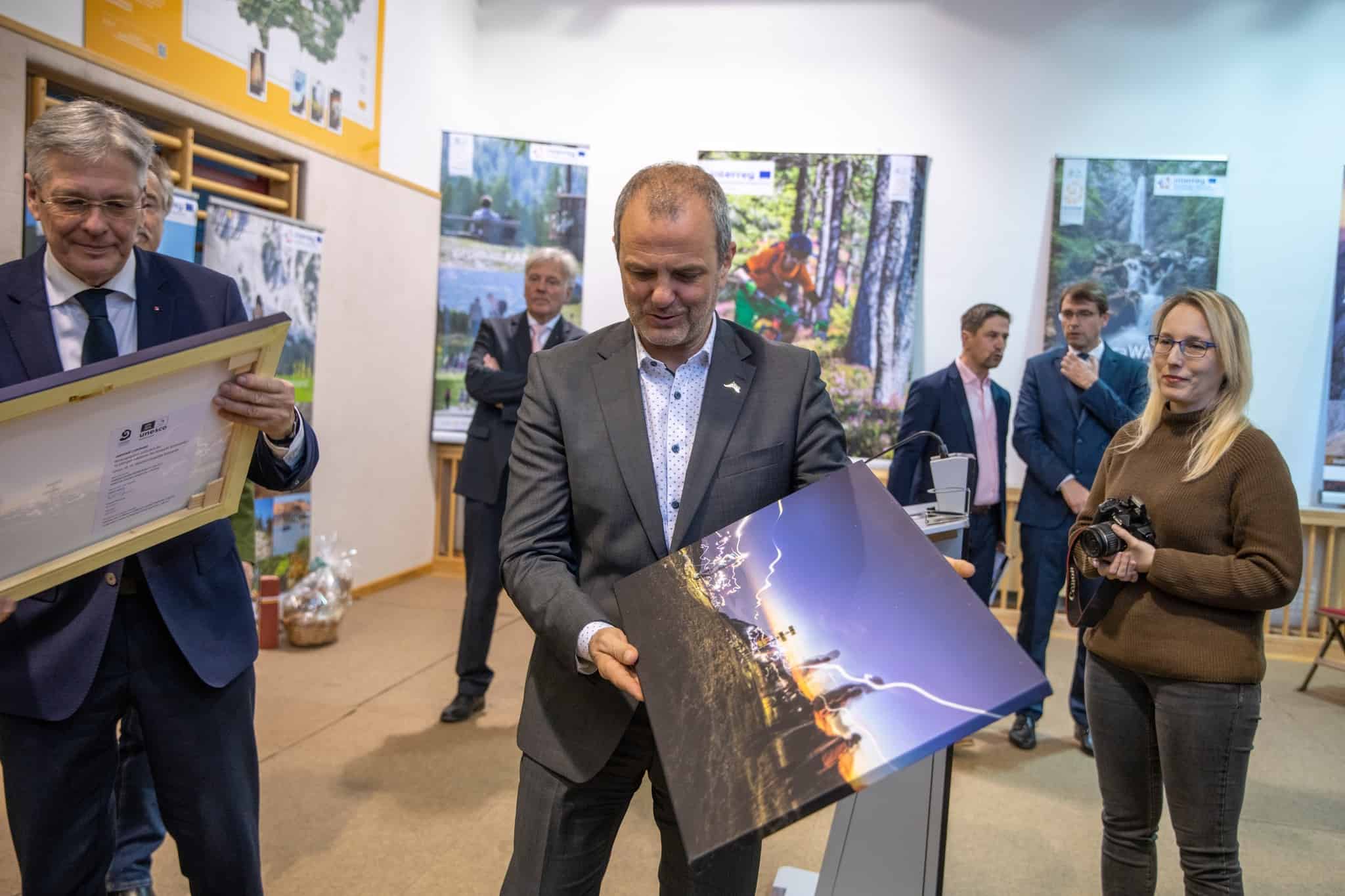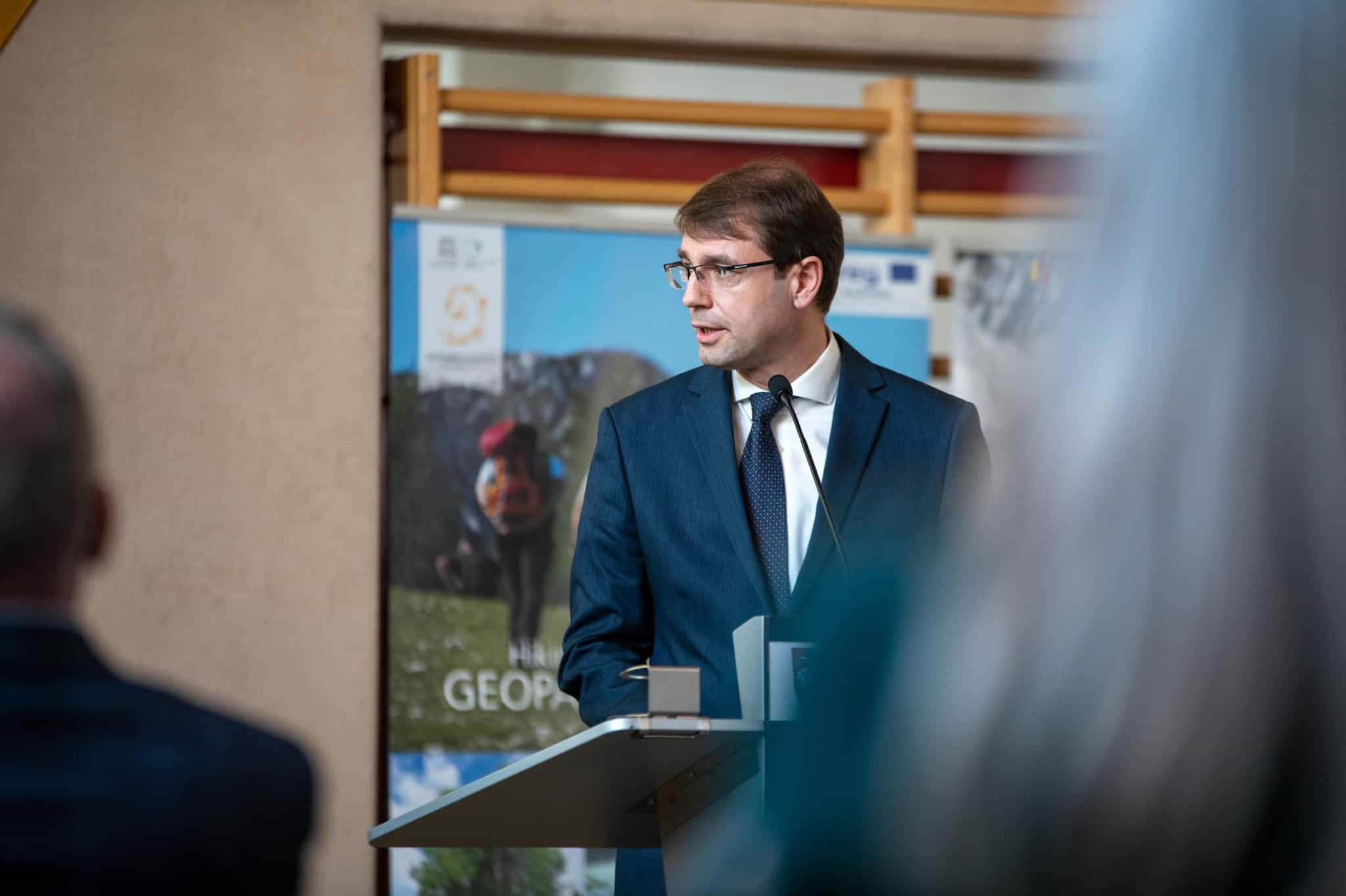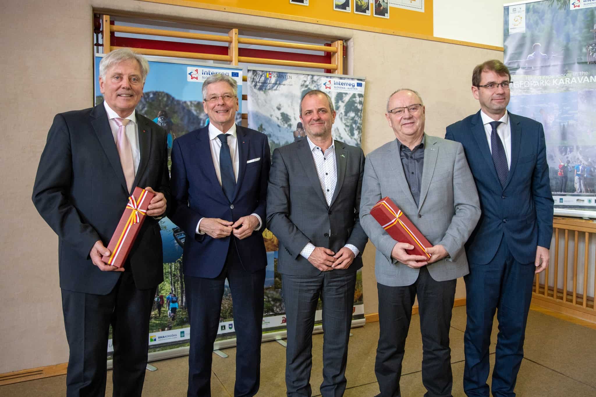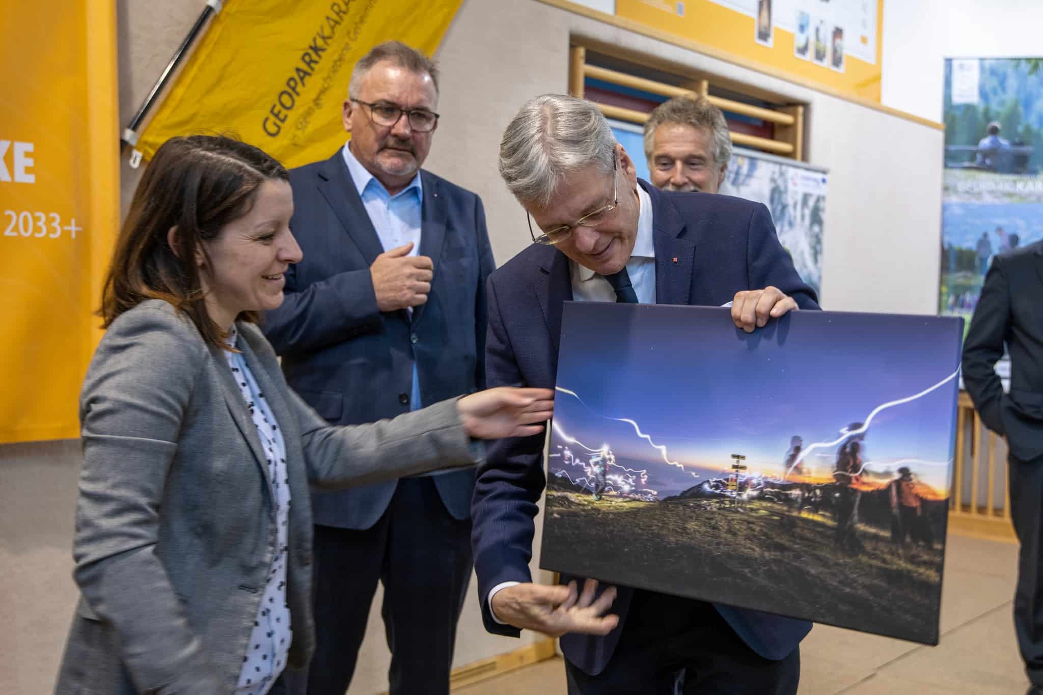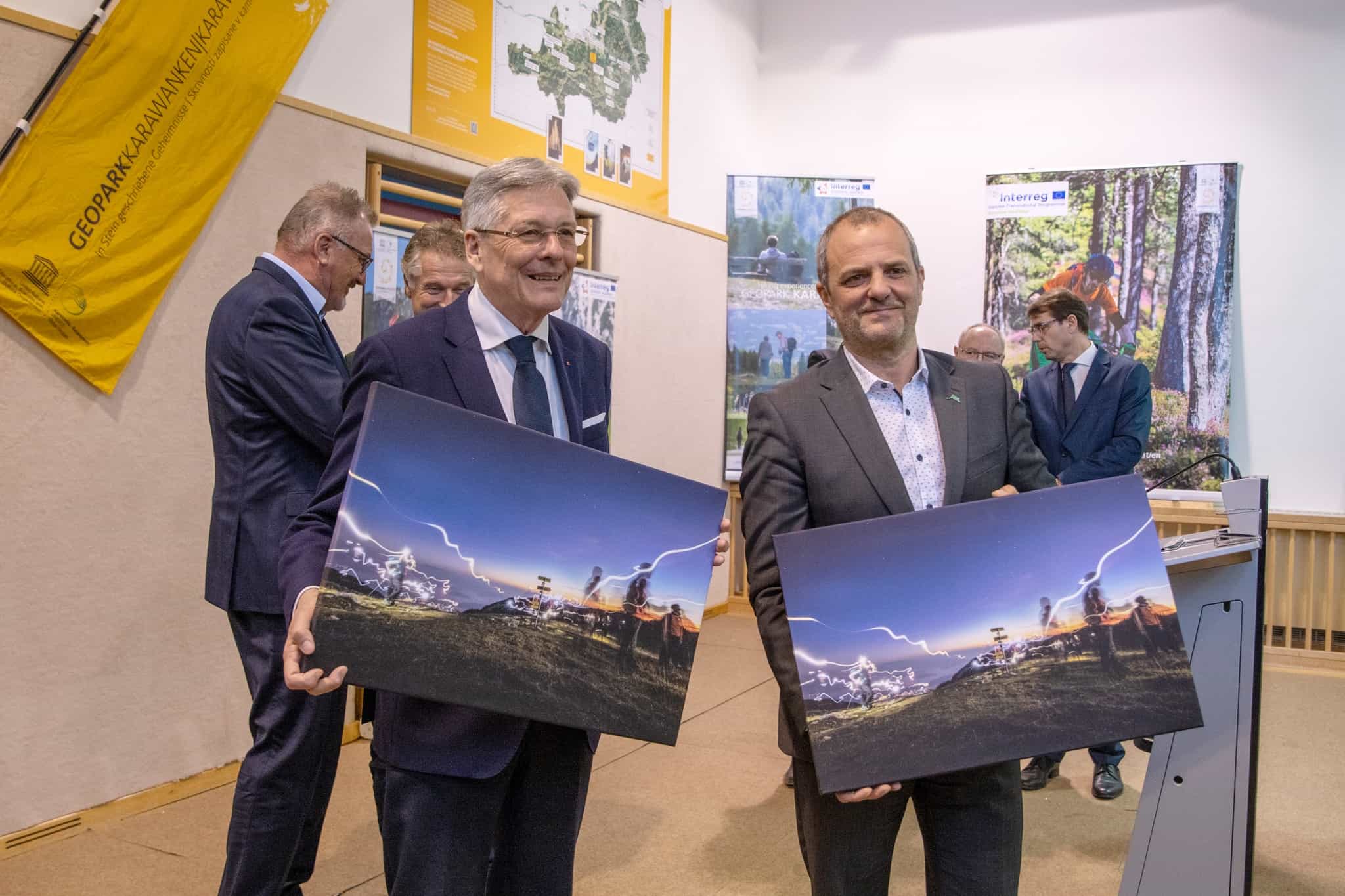 Na včerajšnjem slavnostnem dogodku so bili prisotni tudi minister za naravne vire in prostor Republike Slovenije Uroš Brežan, Deželni glavar dr. Peter Kaiser in predsednik Globalne mreže geoparkov Nikos Zourus.