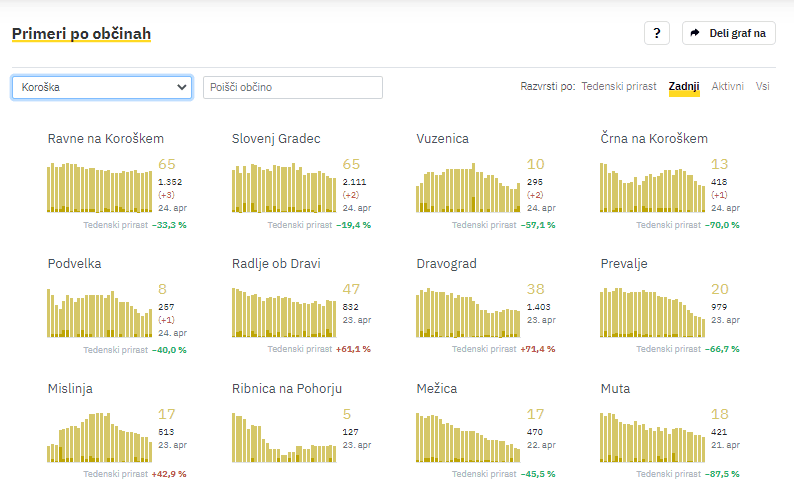 Na Koroškem so v zadnjih sedmih dneh zabeležili 142 novih okužb s koronavirusom. Sedemdnevno povprečje v regiji znaša 20.28.