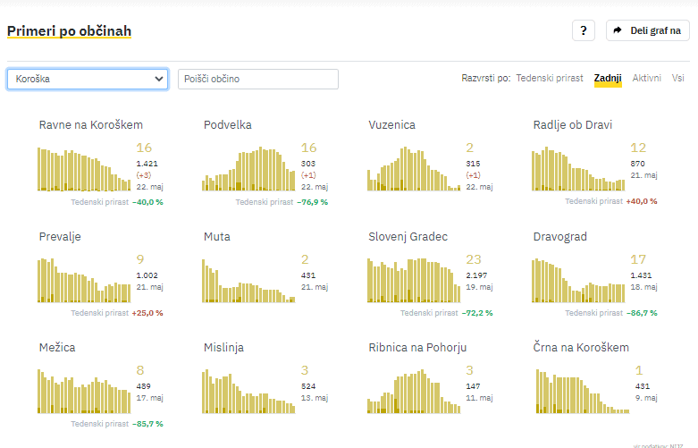Na Koroškem so v zadnjih sedmih dneh zabeležili 31 novih okužb s koronavirusom. Sedemdnevno povprečje v regiji znaša 4,42.