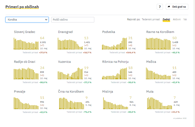 Na Koroškem so v zadnjih sedmih dneh zabeležili 117 novih okužb s koronavirusom. Sedemdnevno povprečje v regiji znaša 16,71.
