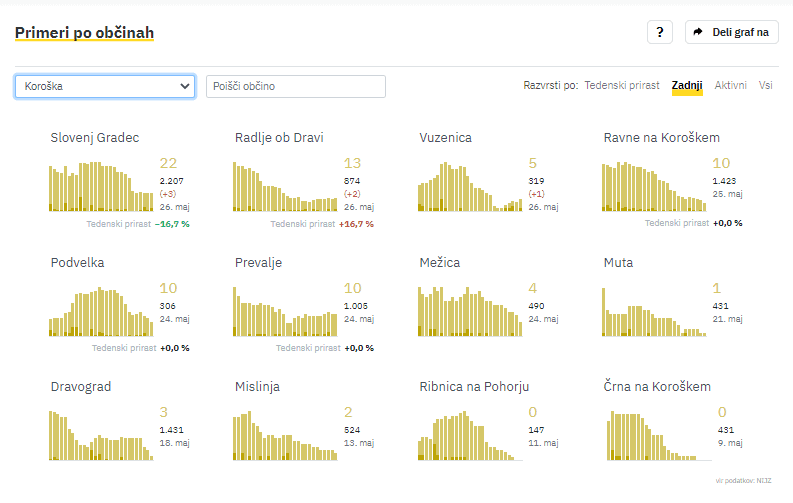 Na Koroškem so v zadnjih sedmih dneh zabeležili 39 novih okužb s koronavirusom. Sedemdnevno povprečje v regiji znaša 5,57.