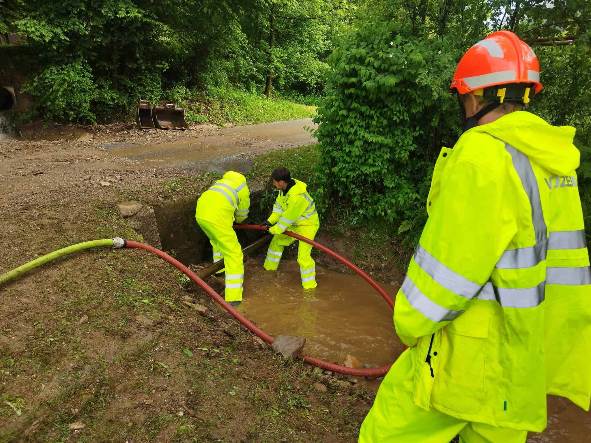 Iz kleti dveh večstanovanjskih objektov v Radljah ob Dravi in dveh samostojnih hišah v Zg. Vižingi so gasilci prečrpali vodo.