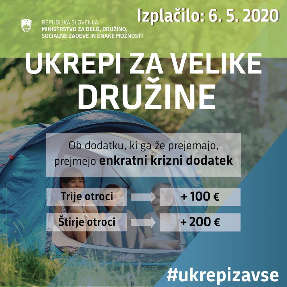 Skupna vrednost ukrepa, ki je del paketa za lajšanje posledic epidemije, je skoraj 3.5 milijona evrov, njegov namen pa je lajšanje socialnega položaja družin s tremi ali več otroki.