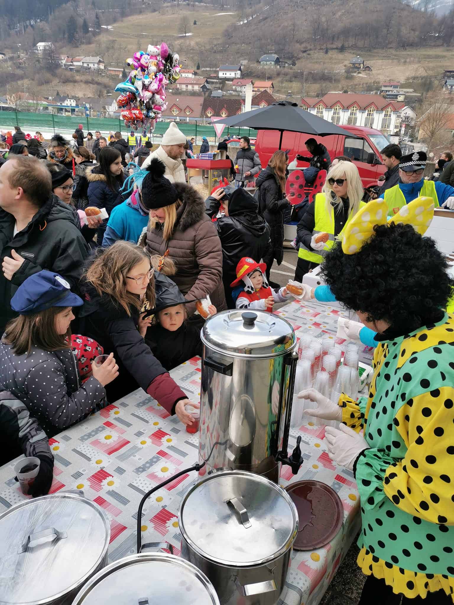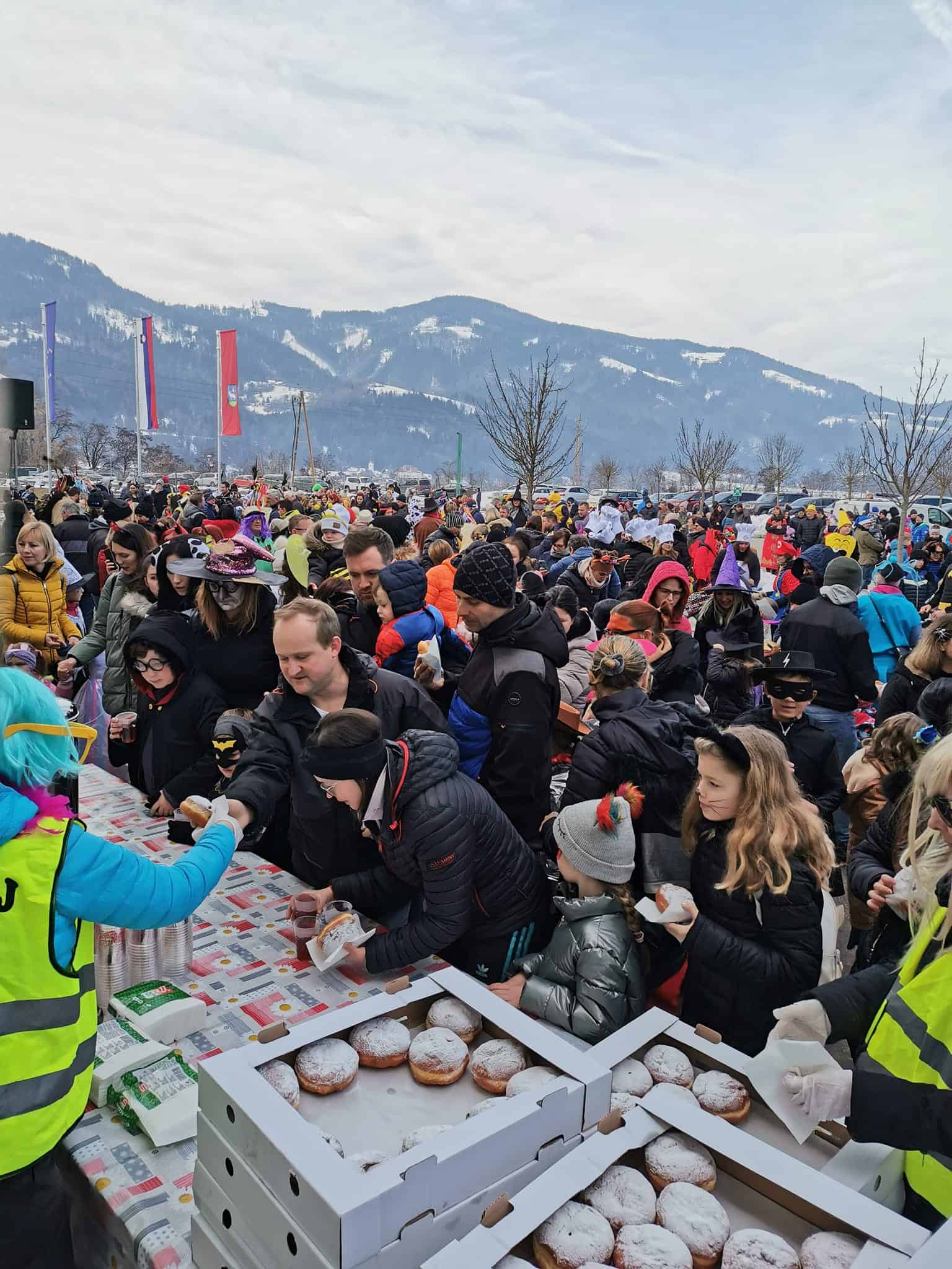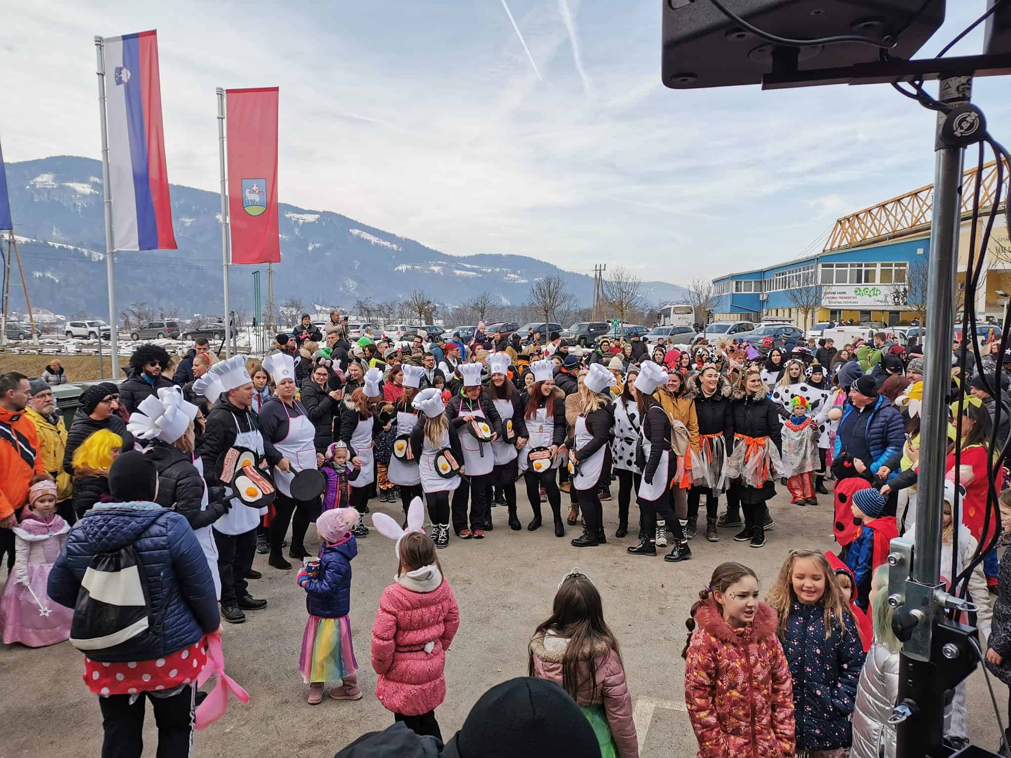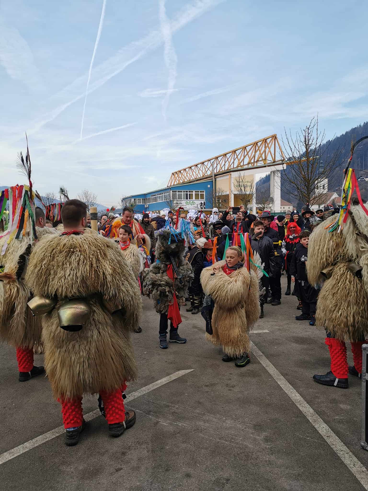 Ob 10. uri so se številne maske zbrale na parkirišču pred centrom Meža in nadaljevale povorko čez most do dvorane Špic D, kjer je potekalo veselo in norčavo rajanje.