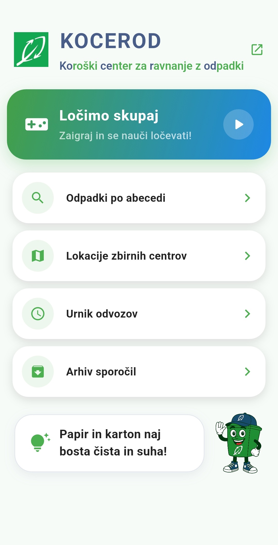 Interaktivna otroška igra o ločevanju odpadkov