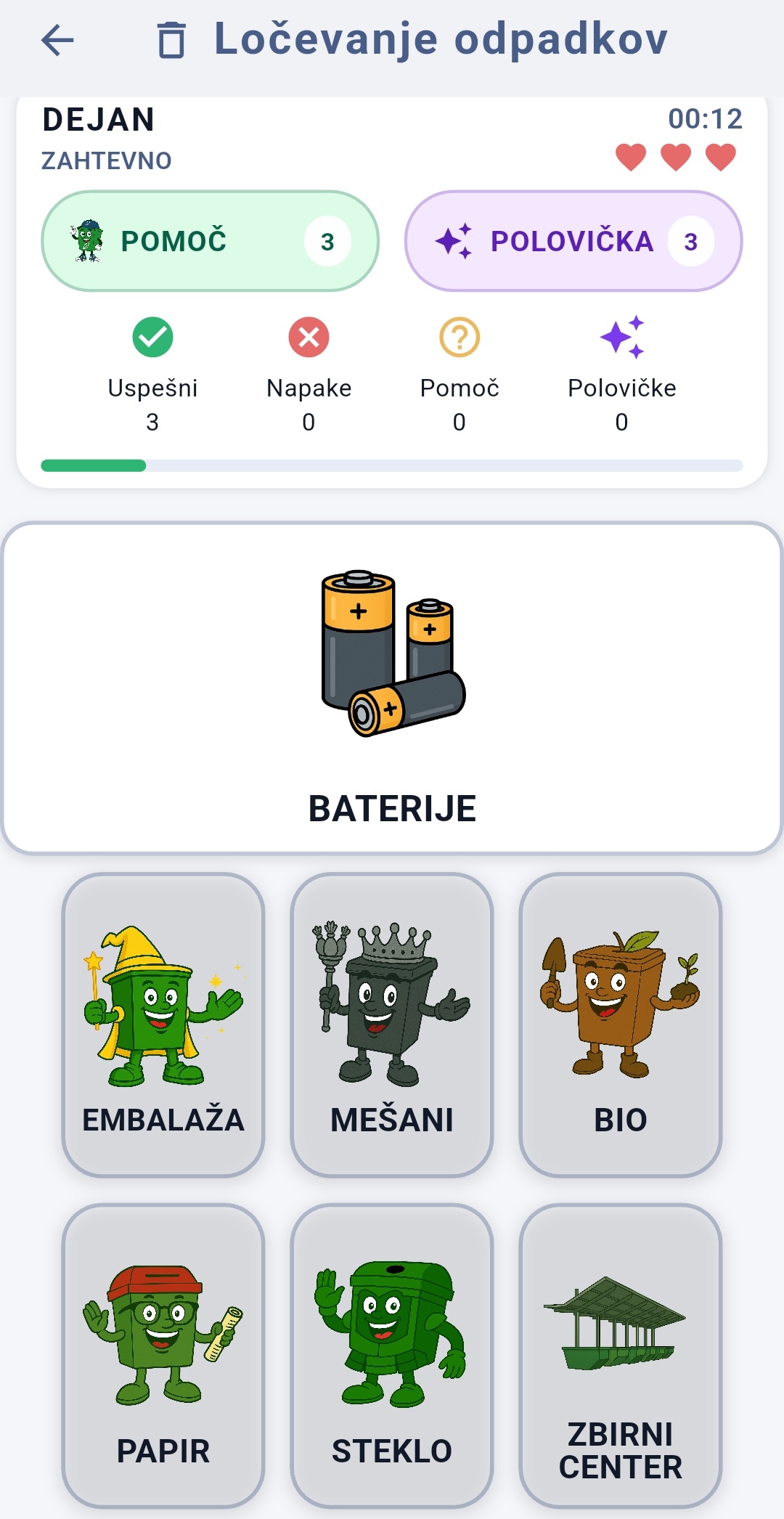 Igra ponuja tri različne nivoje zahtevnosti in bo zagotovo pritegnila male in velike otroke, ki se bodo z igranjem le te tudi izobraževali o pravilnem ločevanju odpadkov in skrbi za okolje.