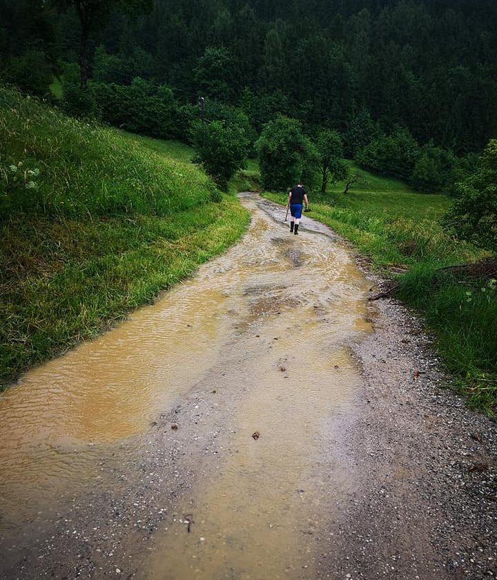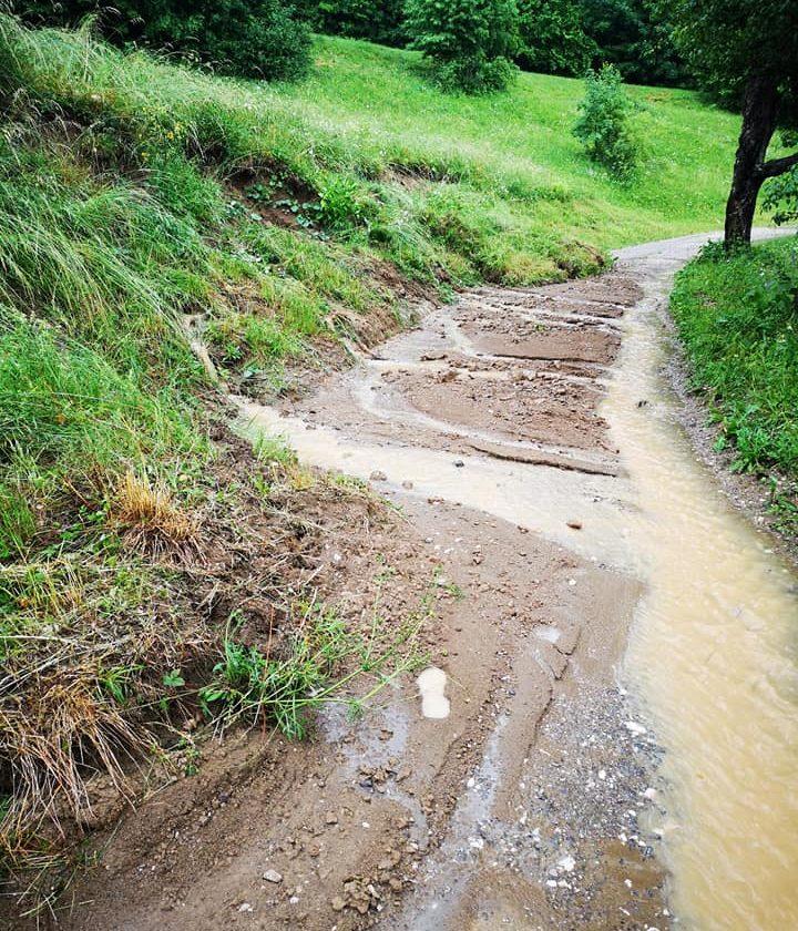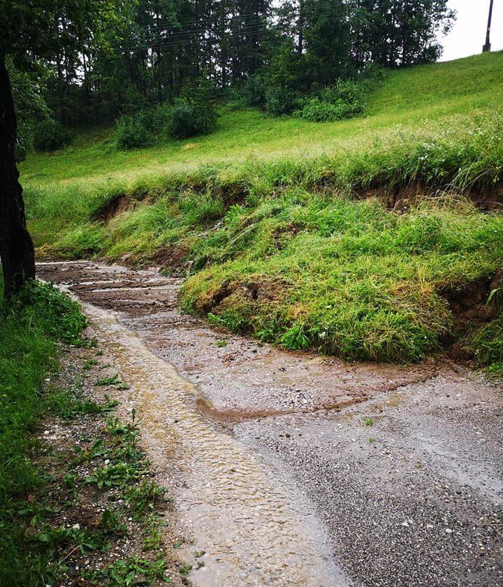 Na cesto na Leše se je zopet vsul plaz, cesta je neprevozna, prav tako je neprevozna cesta na Šentanel.