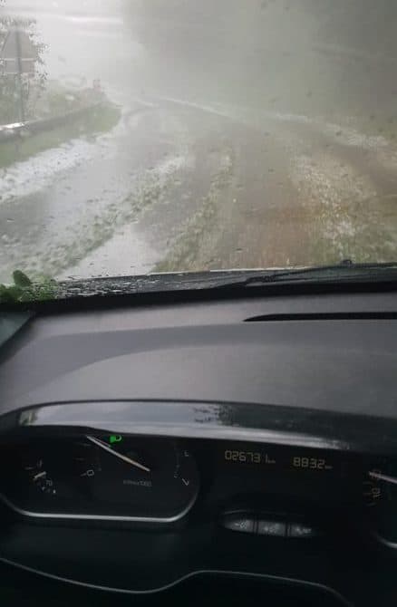 Napovedi vremenoslovcev so se uresničile. Del Slovenije in Koroško je danes okoli 15. ure zajelo močno deževje s točo.