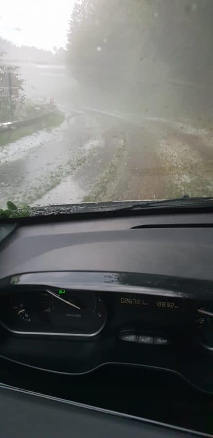 Napovedi vremenoslovcev so se uresničile. Del Slovenije in Koroško je danes okoli 15. ure zajelo močno deževje s točo.