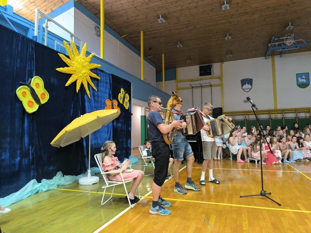 Zbrane je otroški pevski zbor, plesalci, izvajalci telesnih tolkal, harmonikarja, baritonist in najmlajši s prikupnimi počitniškimi verzi.
