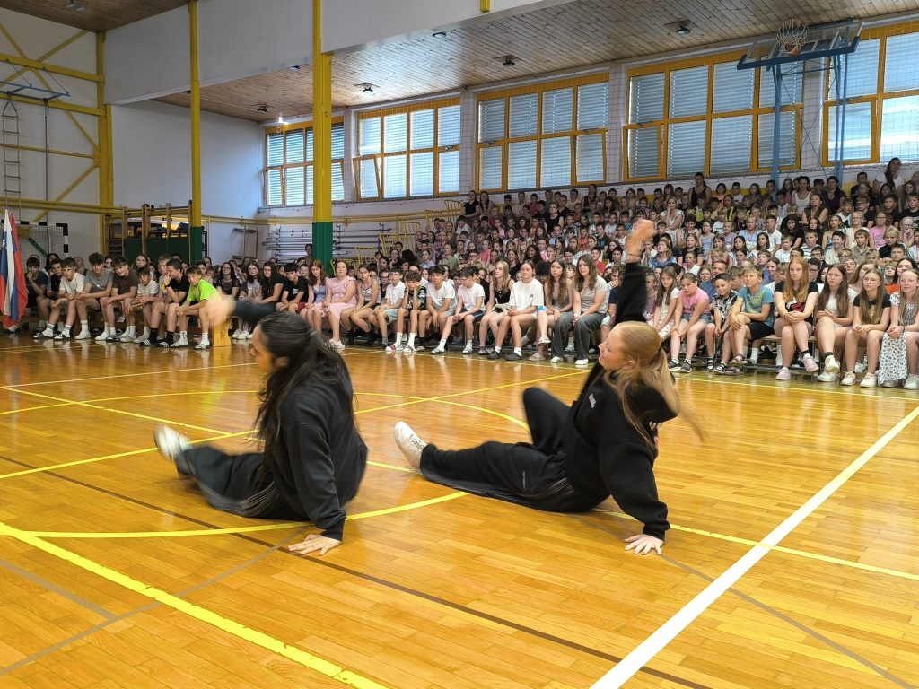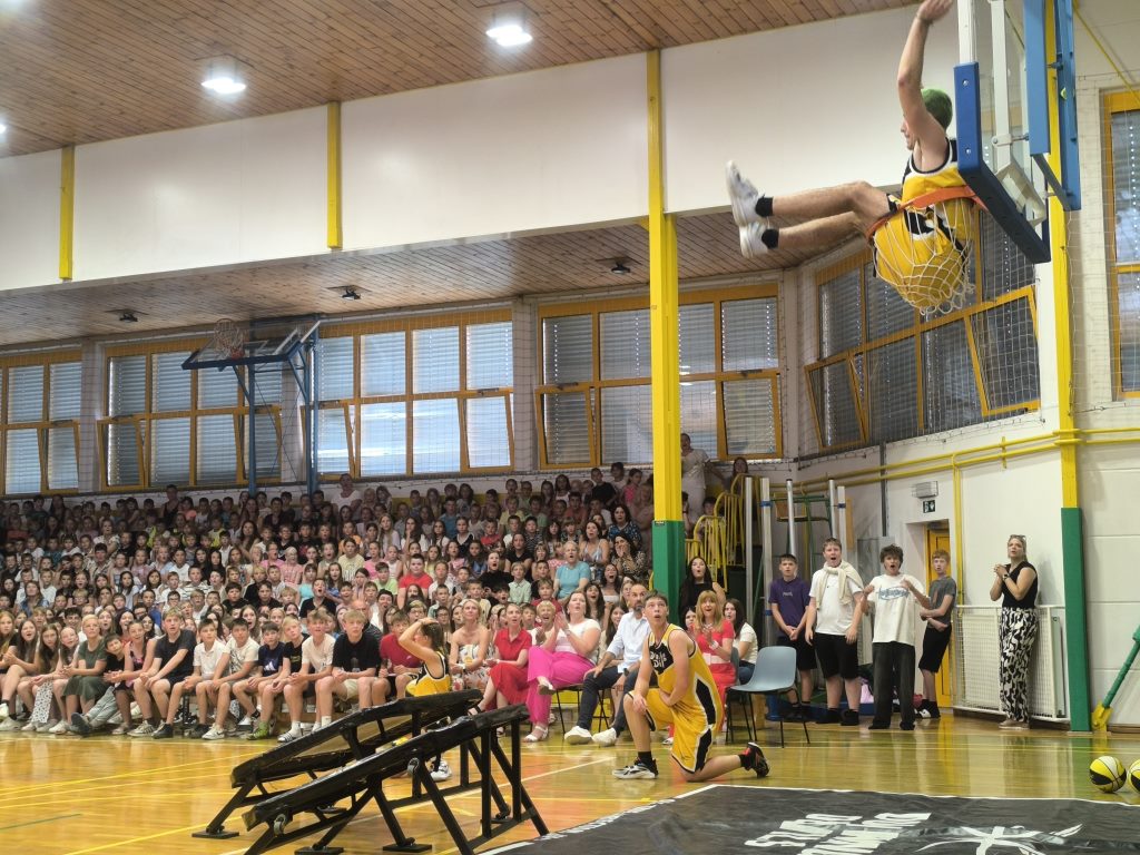 Za presenečenje je poskrbela akrobatska skupina Dunking Devils, ki je z dih jemajočim nastopom razveselila vse učence. Učenci so bili nad nastopom navdušeni, glasno so navijali in vsako njihovo atraktivno potezo pospremili z bučnim ploskanjem. Njihov obisk je bil sofinanciran iz šolskega sklada in projekta "Podari trenutek", kar je učencem omogočilo nepozabno izkušnjo.