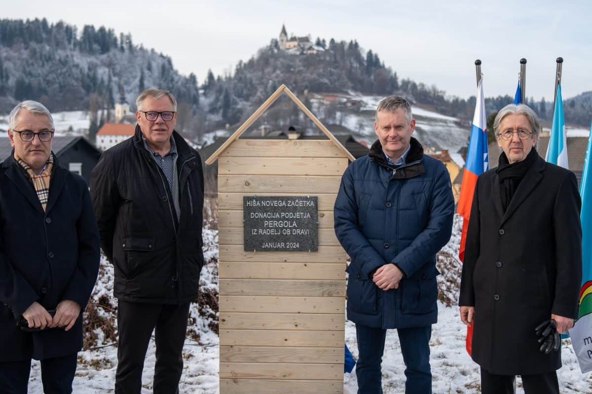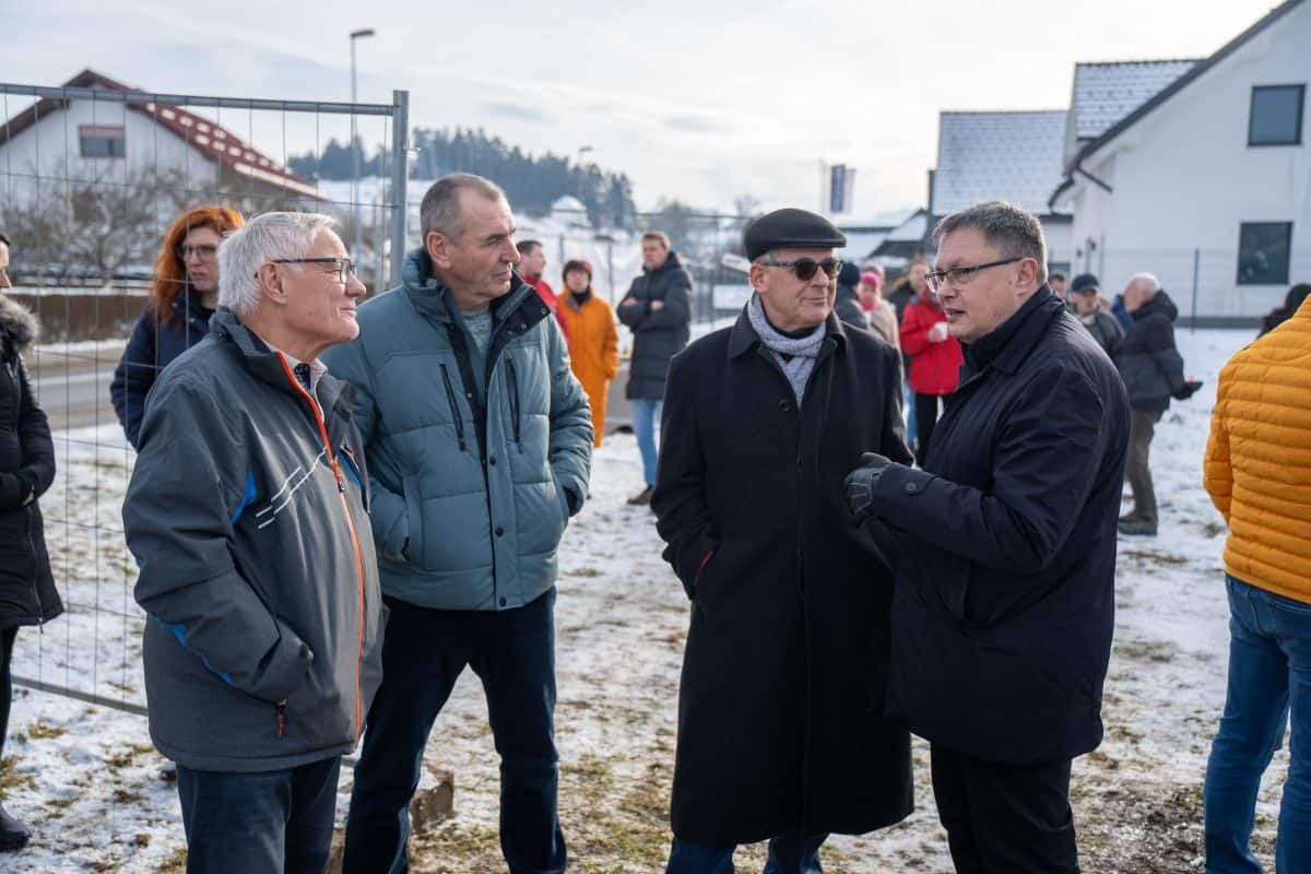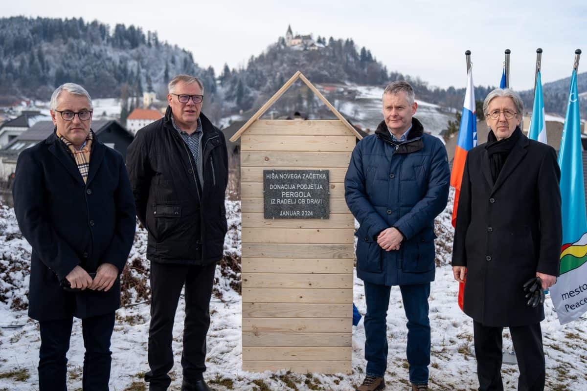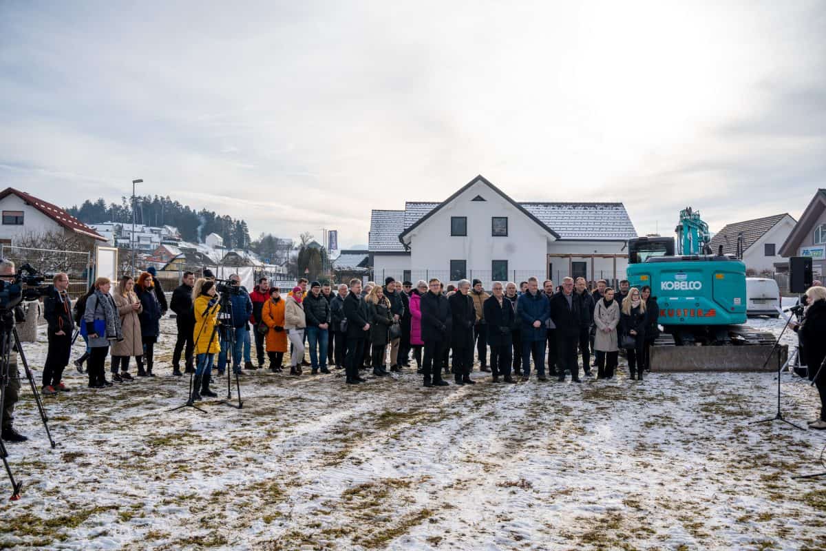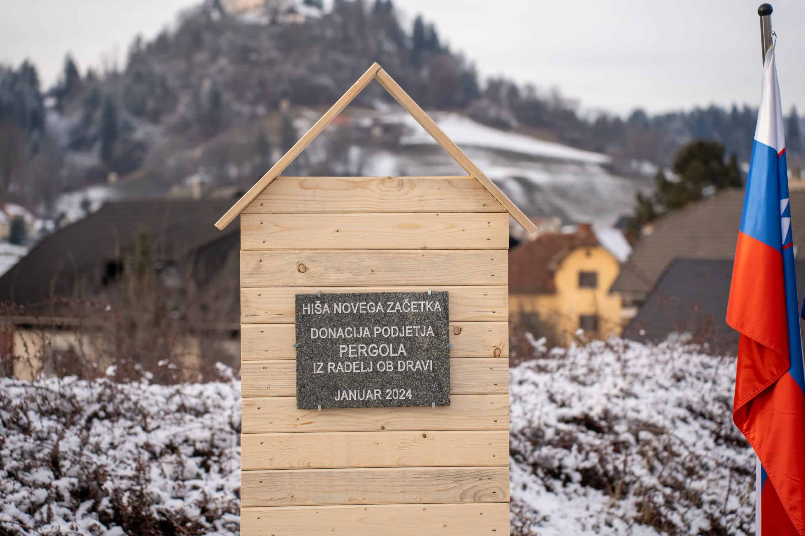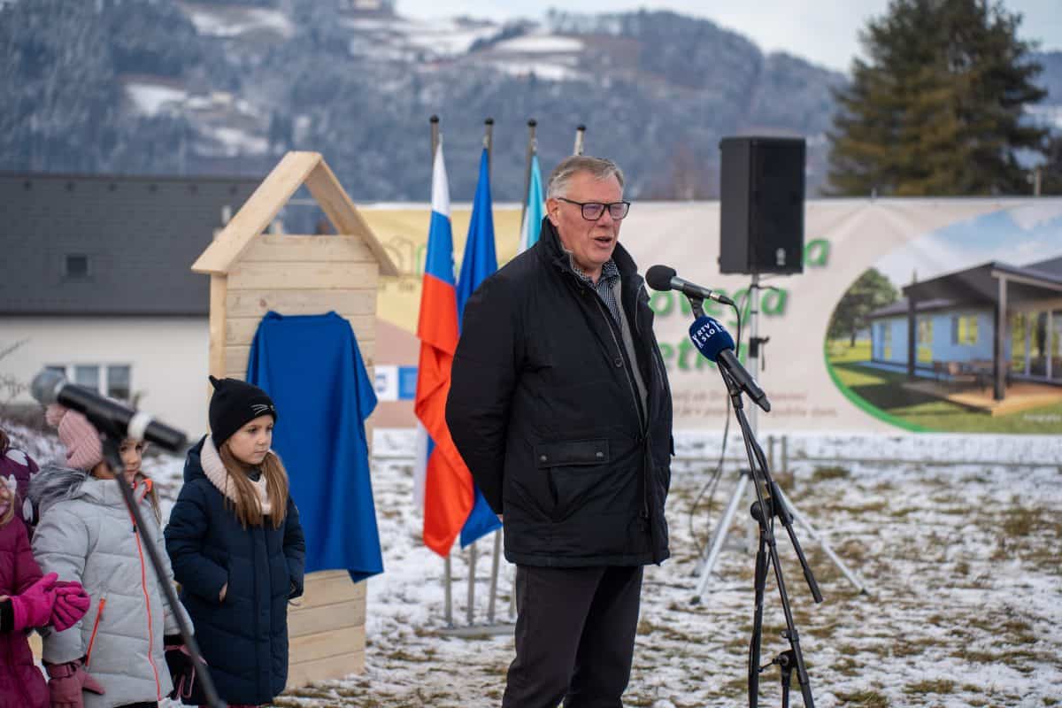 Temeljni kamen za pritlično montažno hišo so položili Vidko Švajger, direktor podjetja Pergola d.o.o. iz Radelj ob Dravi, ki je hišo doniralo skupaj s številnimi izvajalci in dobavitelji, Tilen Klugler, župan MO Slovenj Gradec (občina je prispevala zemljišče), Matjaž Han, minister za gospodarstvo, turizem in šport ter Boštjan Šefic, državni sekretar za koordinacijo ukrepov in aktivnosti za obnovo po poplavah 2023.