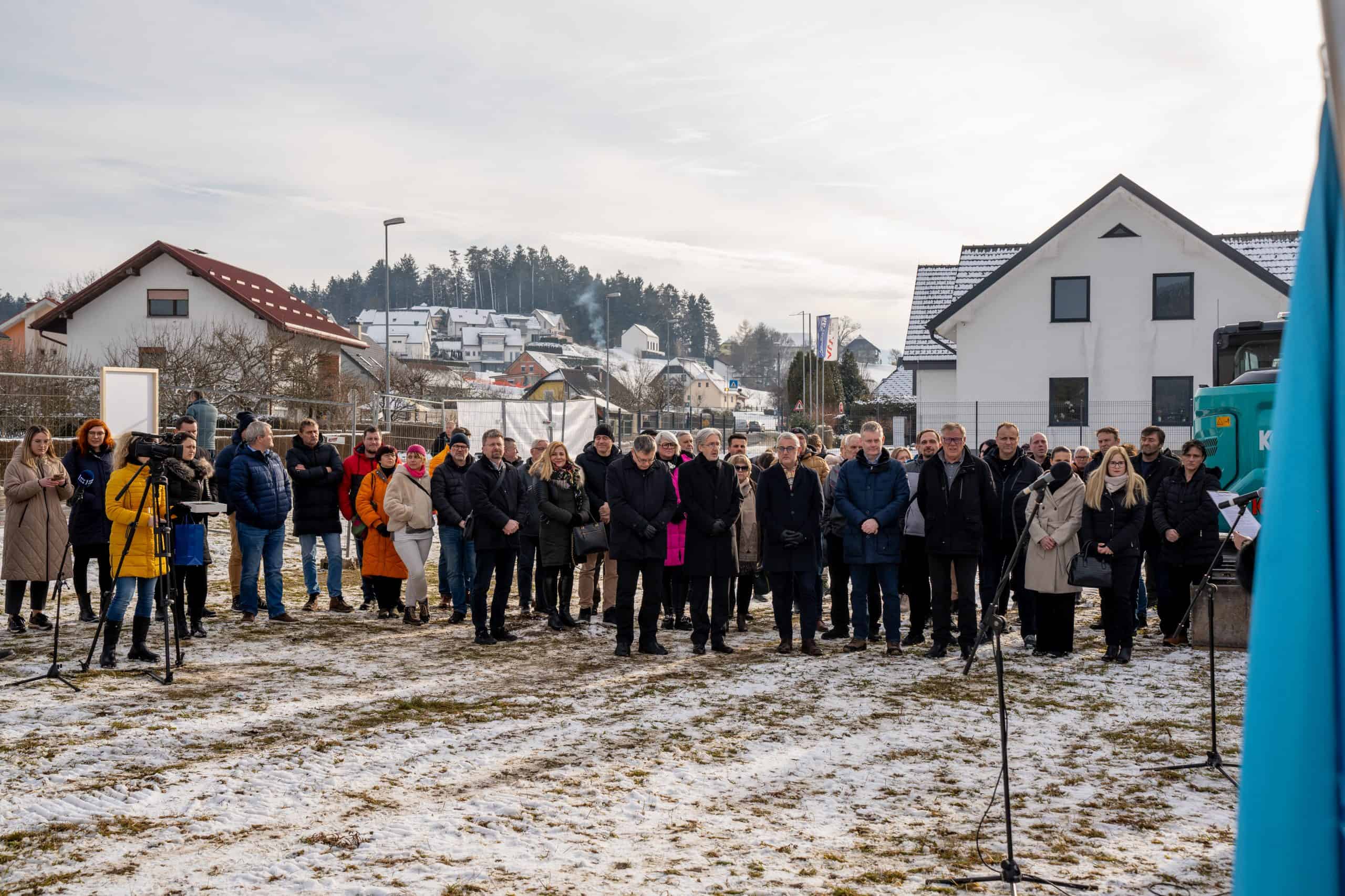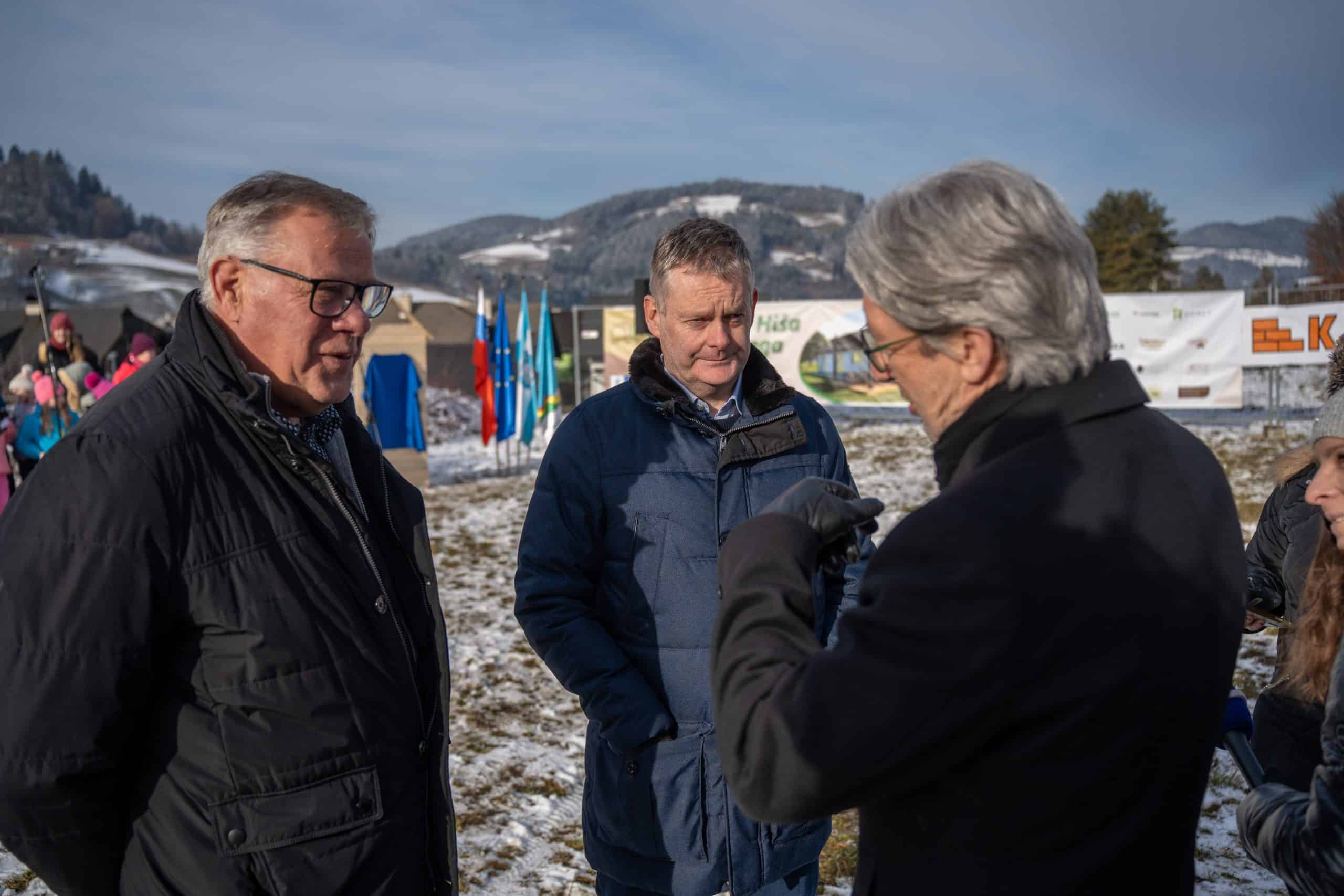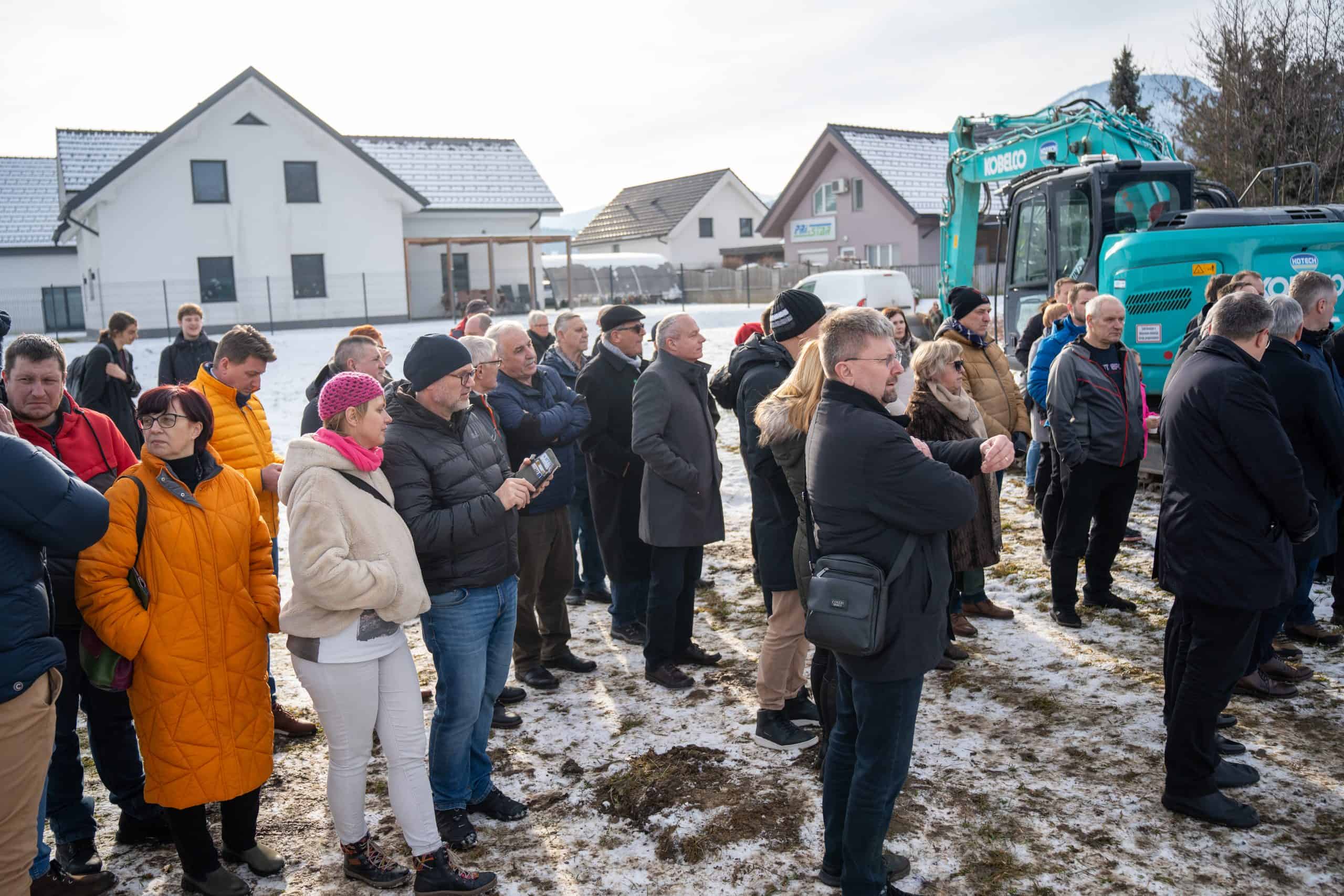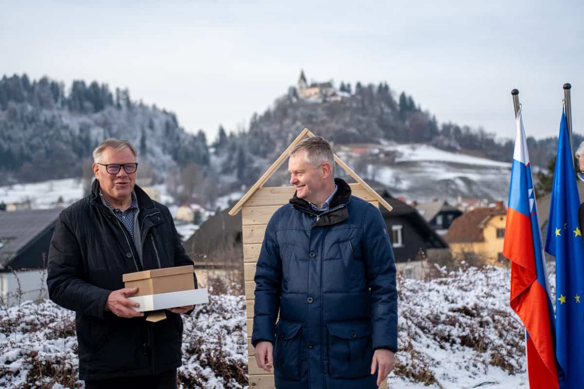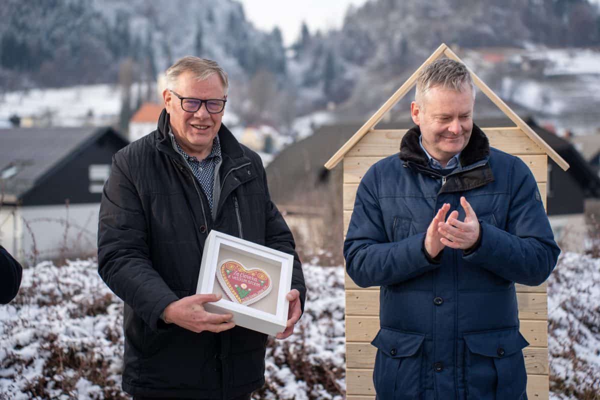 Temeljni kamen za pritlično montažno hišo so položili Vidko Švajger, direktor podjetja Pergola d.o.o. iz Radelj ob Dravi, ki je hišo doniralo skupaj s številnimi izvajalci in dobavitelji, Tilen Klugler, župan MO Slovenj Gradec (občina je prispevala zemljišče), Matjaž Han, minister za gospodarstvo, turizem in šport ter Boštjan Šefic, državni sekretar za koordinacijo ukrepov in aktivnosti za obnovo po poplavah 2023.