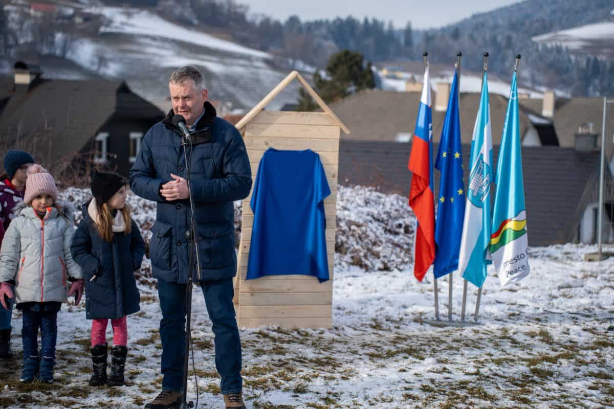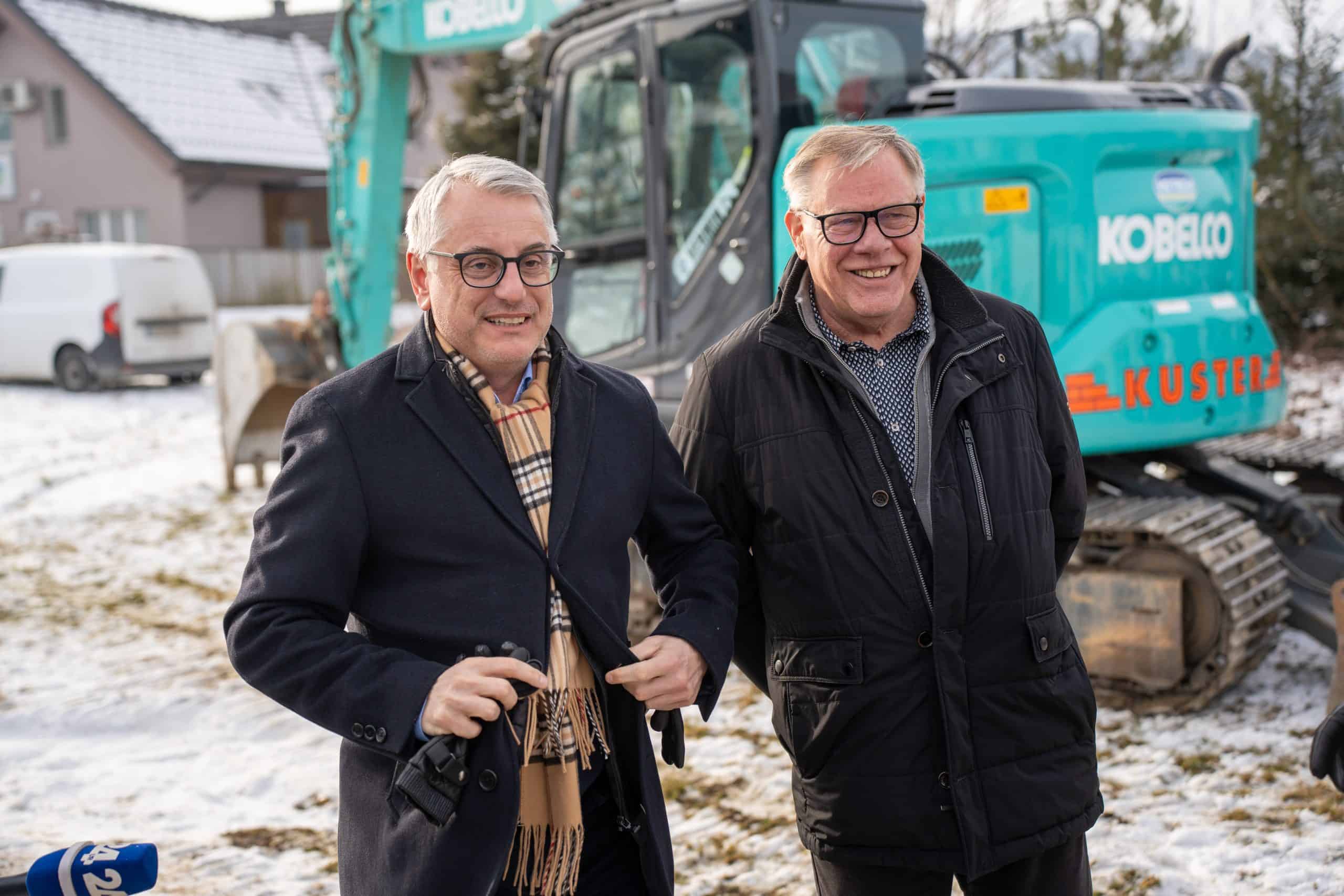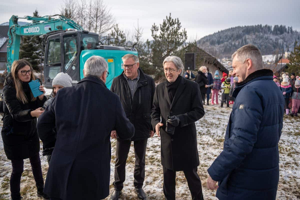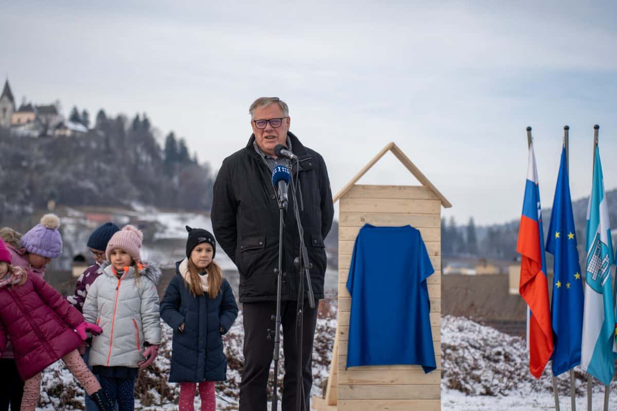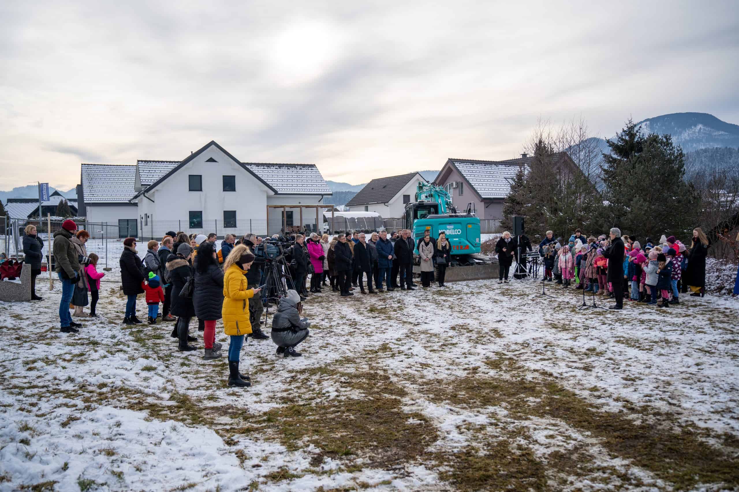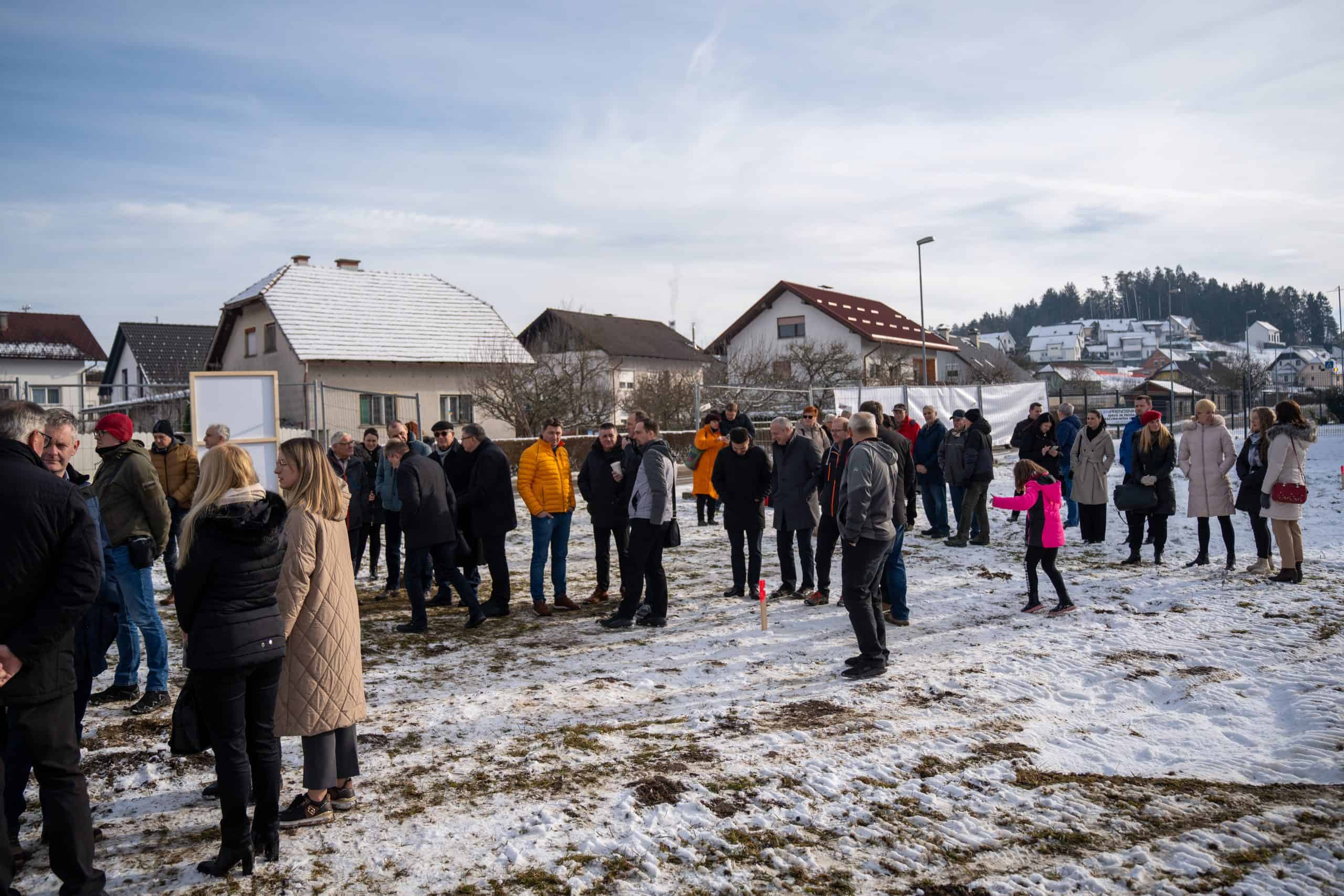 Temeljni kamen za pritlično montažno hišo so položili Vidko Švajger, direktor podjetja Pergola d.o.o. iz Radelj ob Dravi, ki je hišo doniralo skupaj s številnimi izvajalci in dobavitelji, Tilen Klugler, župan MO Slovenj Gradec (občina je prispevala zemljišče), Matjaž Han, minister za gospodarstvo, turizem in šport ter Boštjan Šefic, državni sekretar za koordinacijo ukrepov in aktivnosti za obnovo po poplavah 2023.