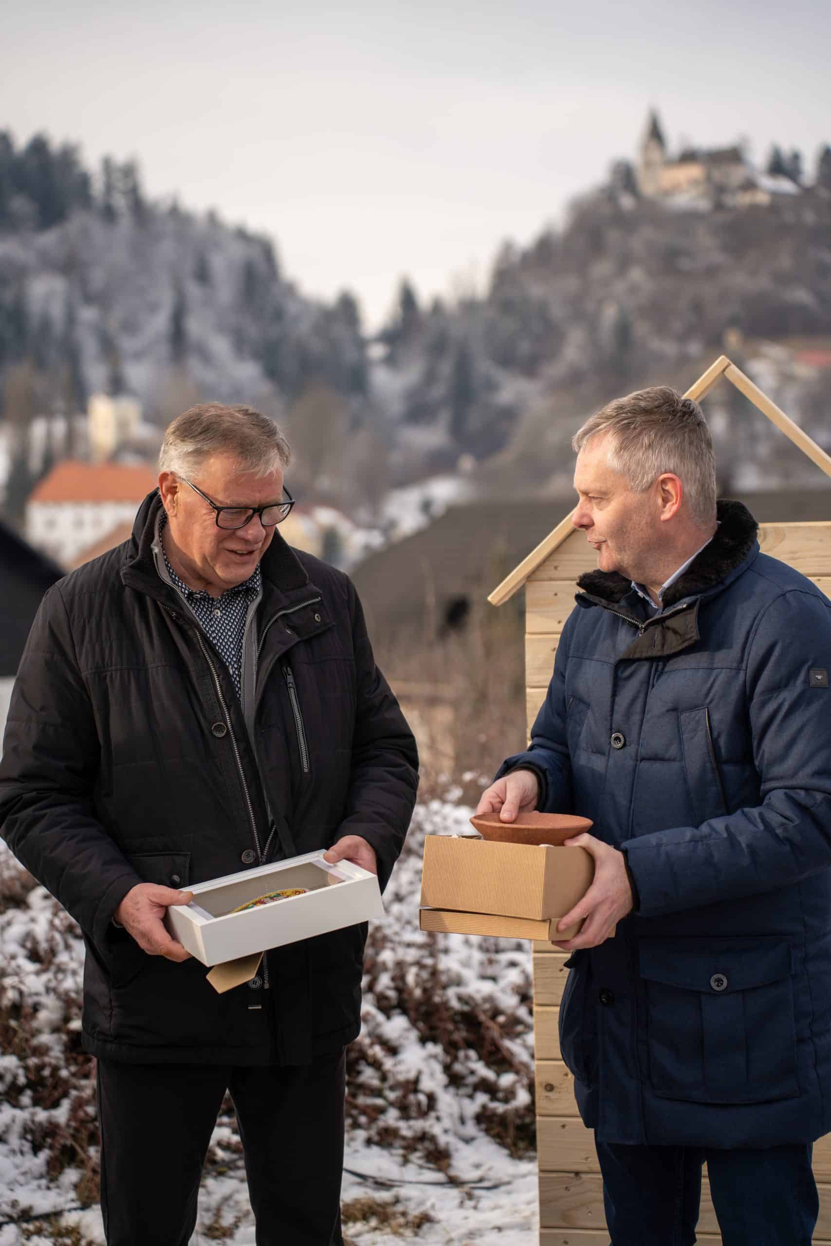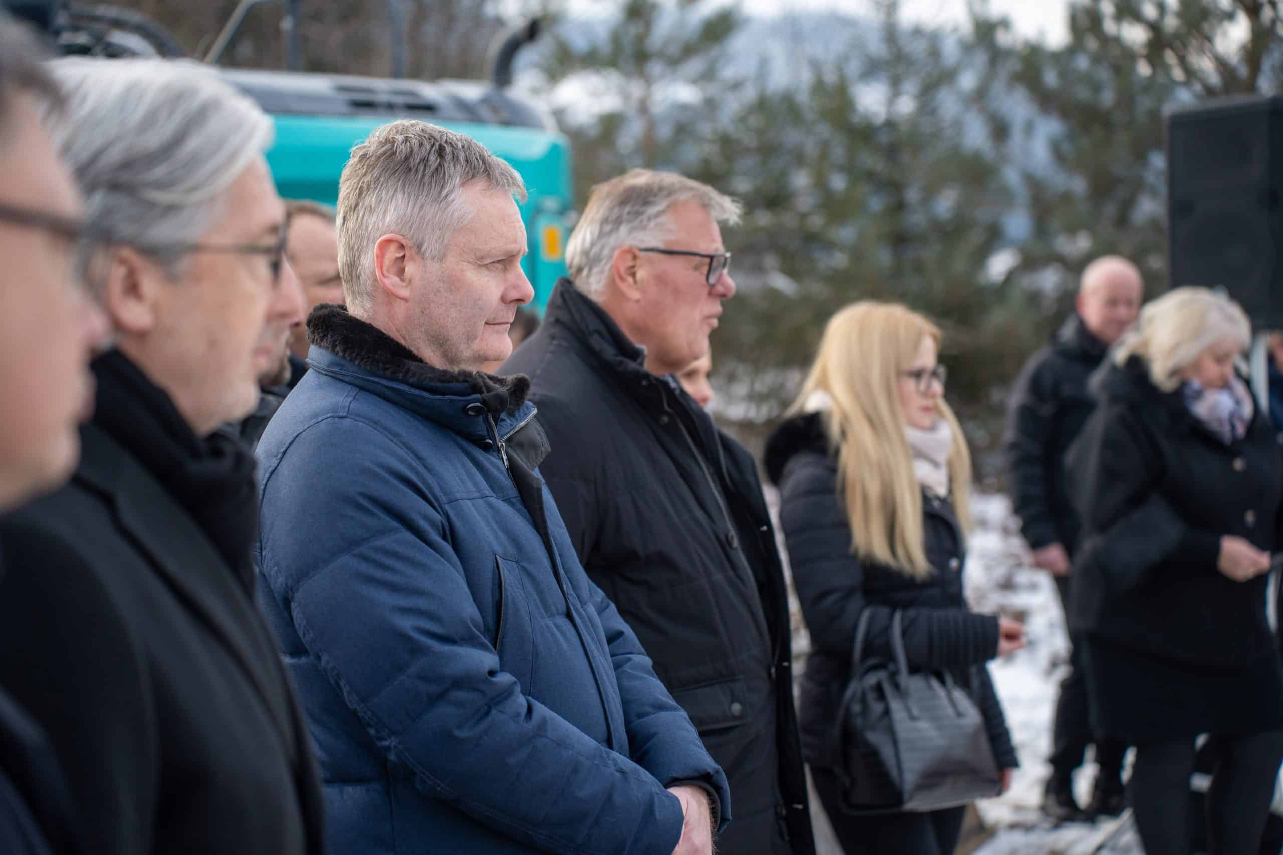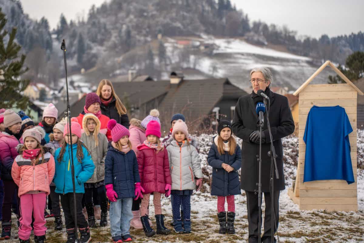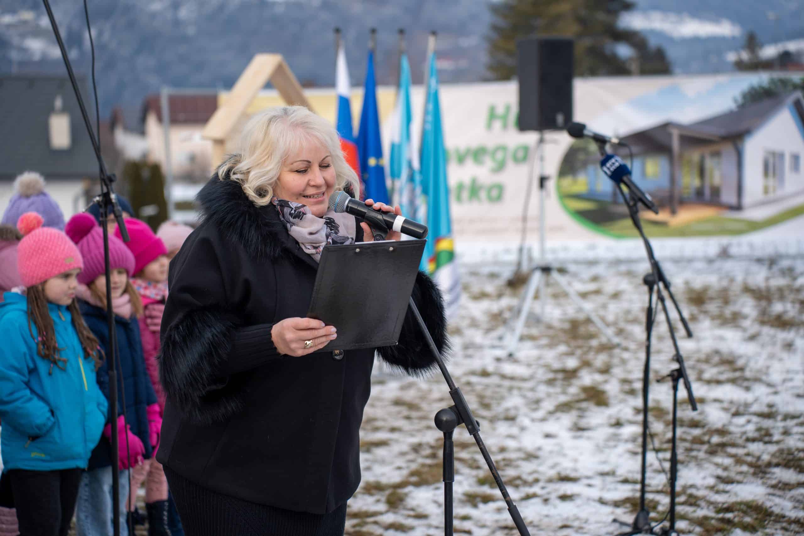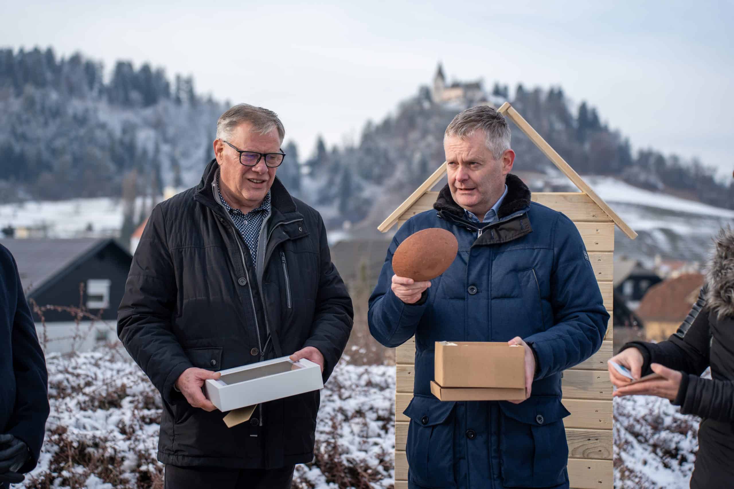 Temeljni kamen za pritlično montažno hišo so položili Vidko Švajger, direktor podjetja Pergola d.o.o. iz Radelj ob Dravi, ki je hišo doniralo skupaj s številnimi izvajalci in dobavitelji, Tilen Klugler, župan MO Slovenj Gradec (občina je prispevala zemljišče), Matjaž Han, minister za gospodarstvo, turizem in šport ter Boštjan Šefic, državni sekretar za koordinacijo ukrepov in aktivnosti za obnovo po poplavah 2023.