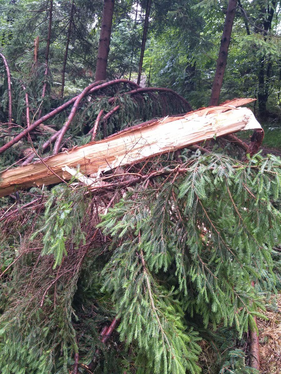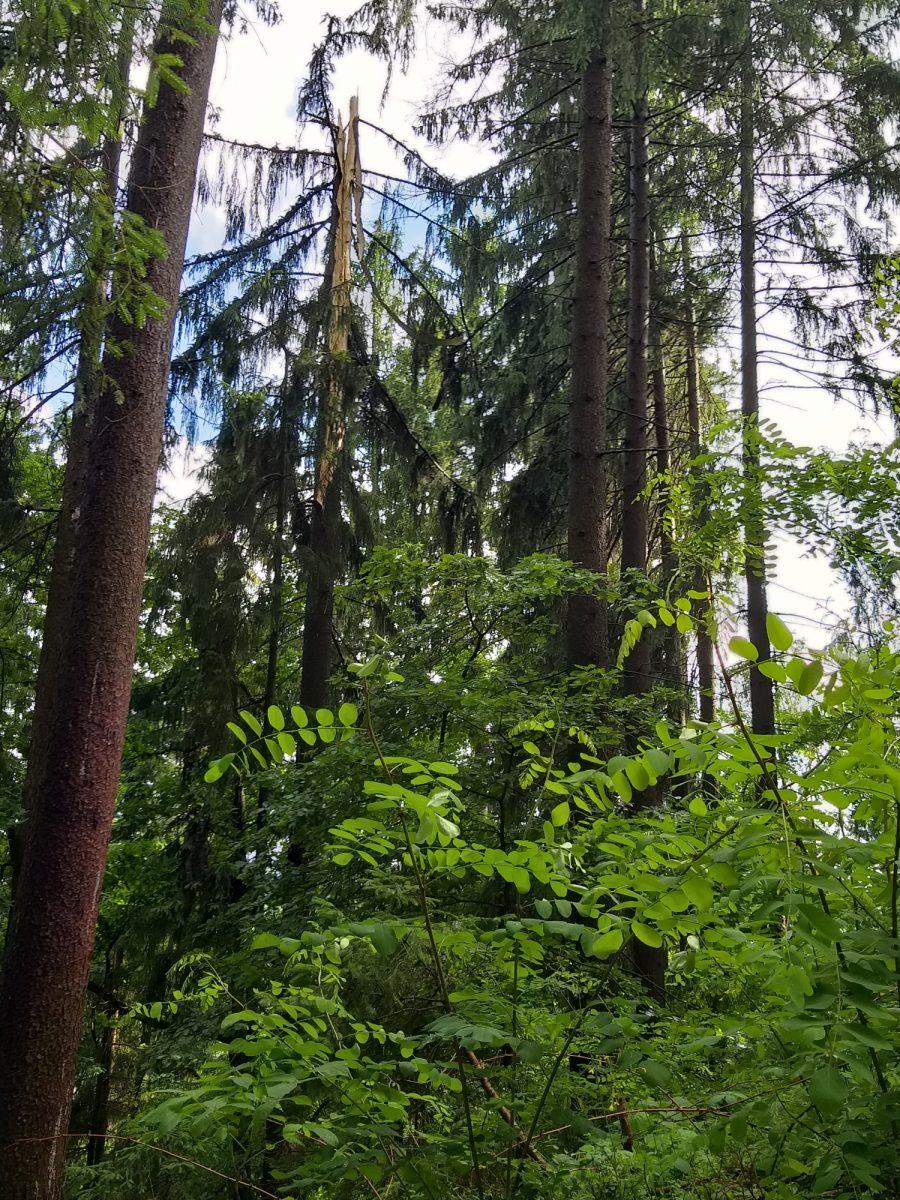 Posledice strele, ki je udarila v drevo nad Prevaljami, pod Brinjevo goro.