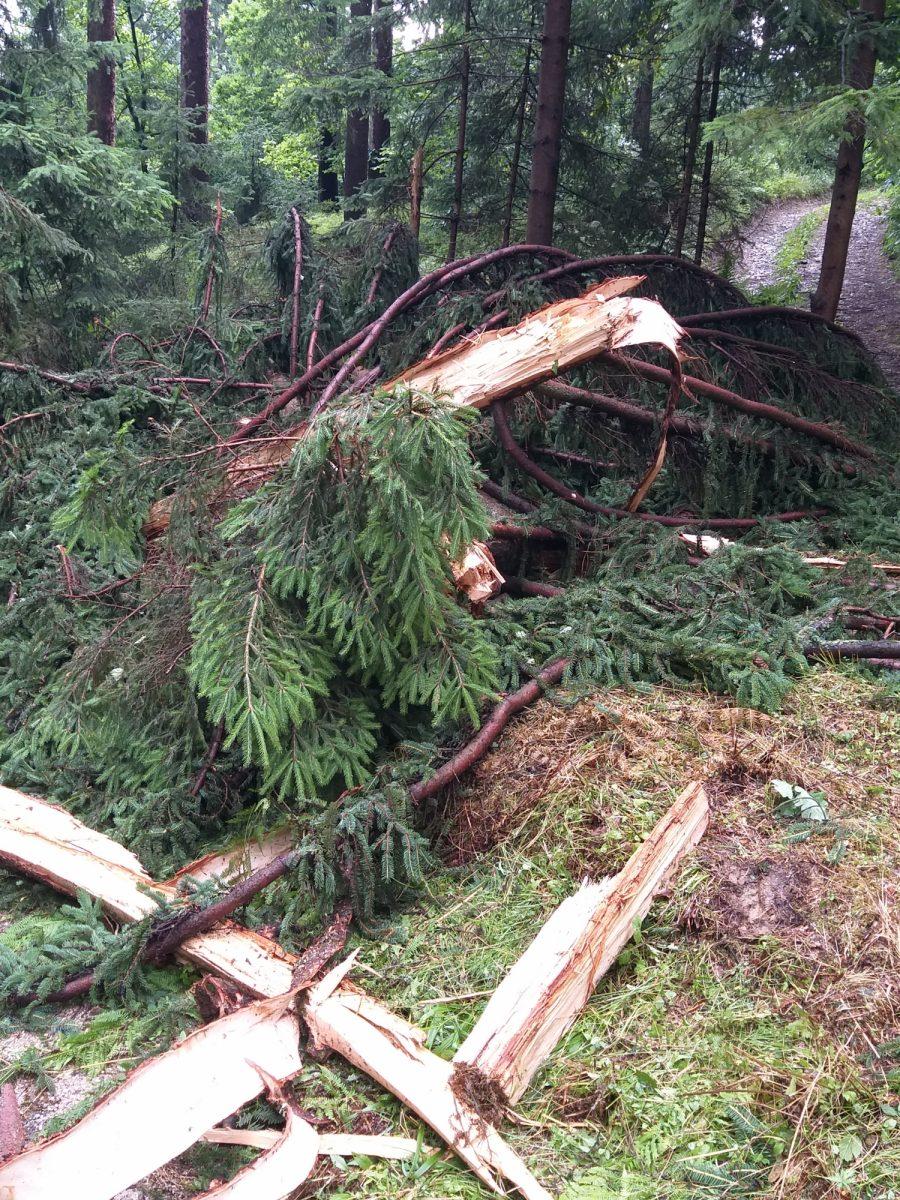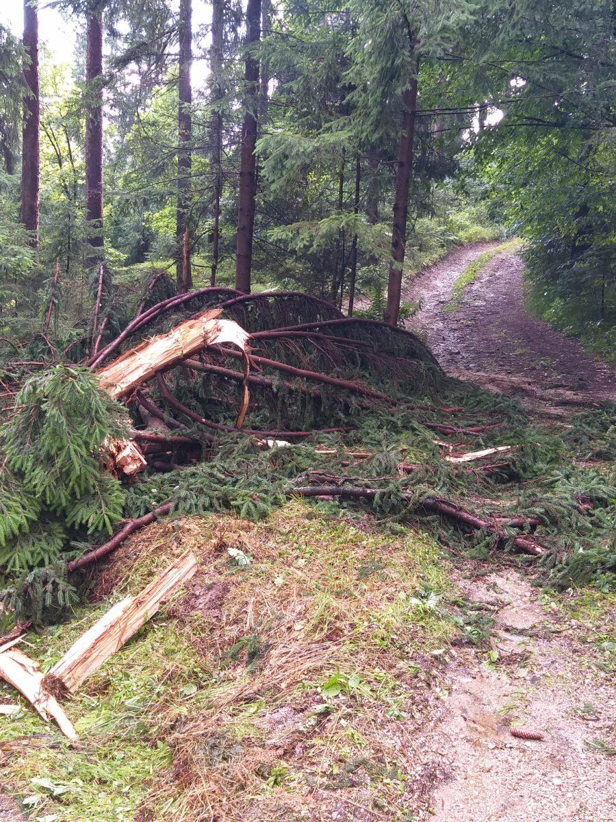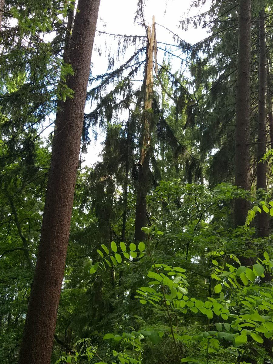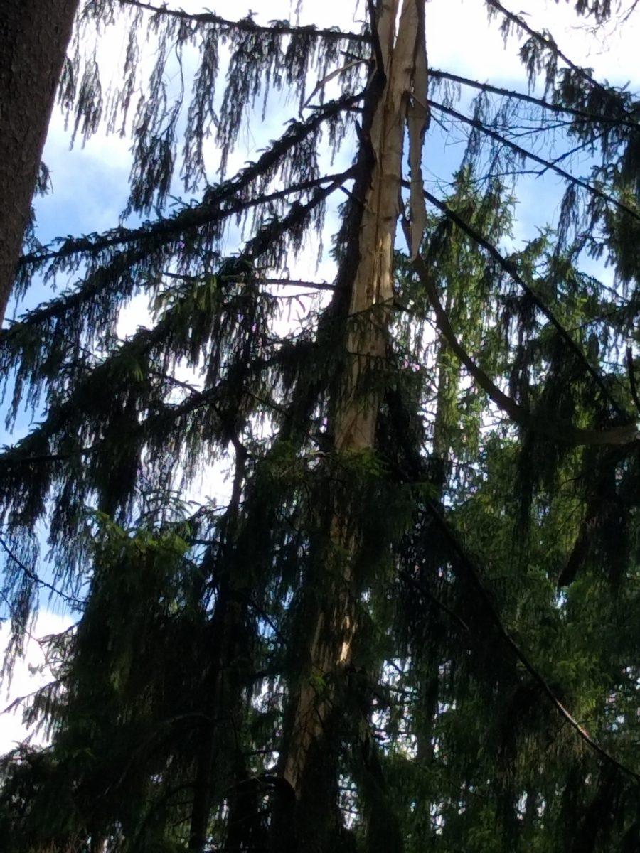 Posledice strele, ki je udarila v drevo nad Prevaljami, pod Brinjevo goro.