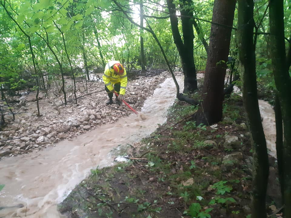 - Ob 11.19 je na Lešah 67, Občina Prevalje, meteorna voda ogrožala stanovanjsko hišo. Vodo so preusmerili gasilci PGD Prevalje.